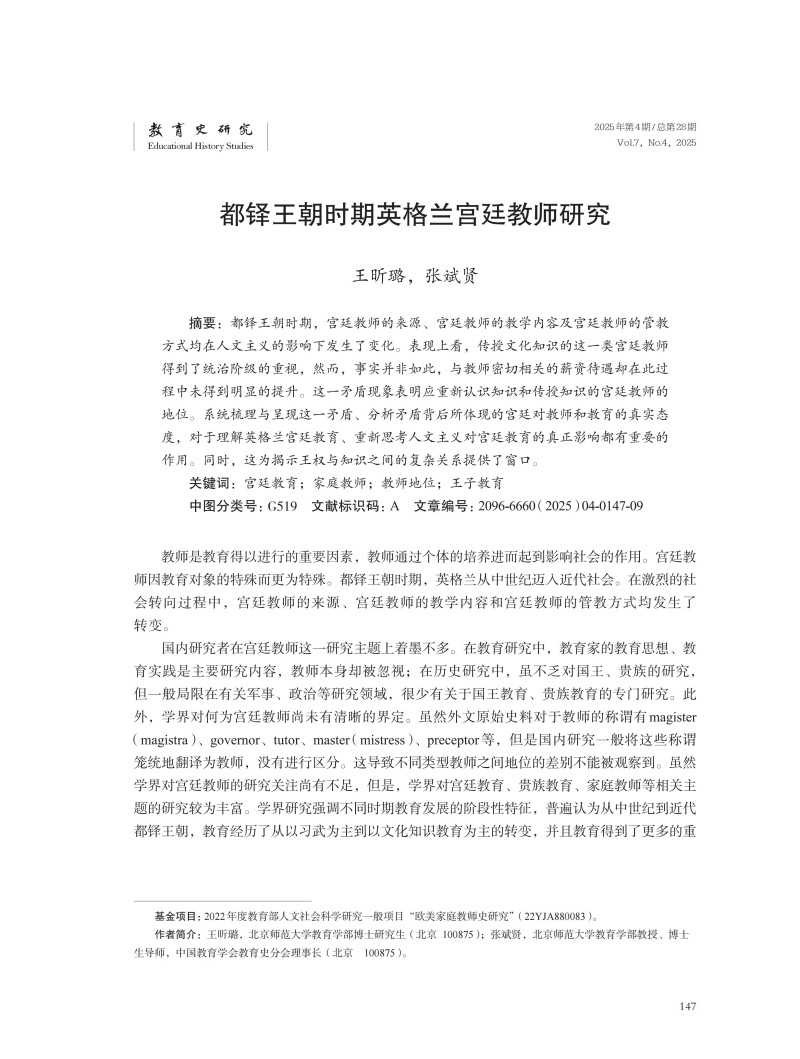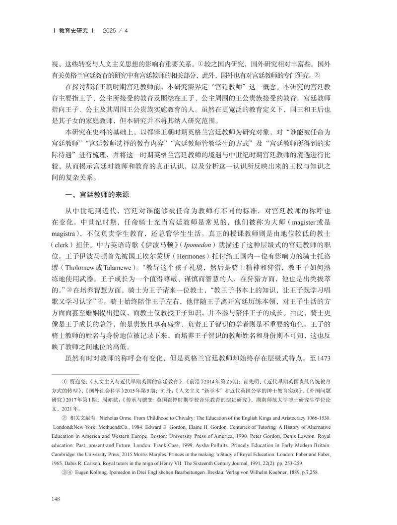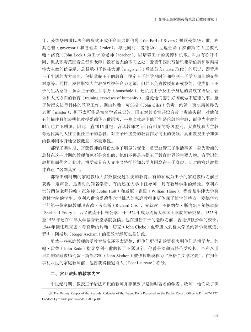 都铎王朝时期英格兰宫廷教师研究