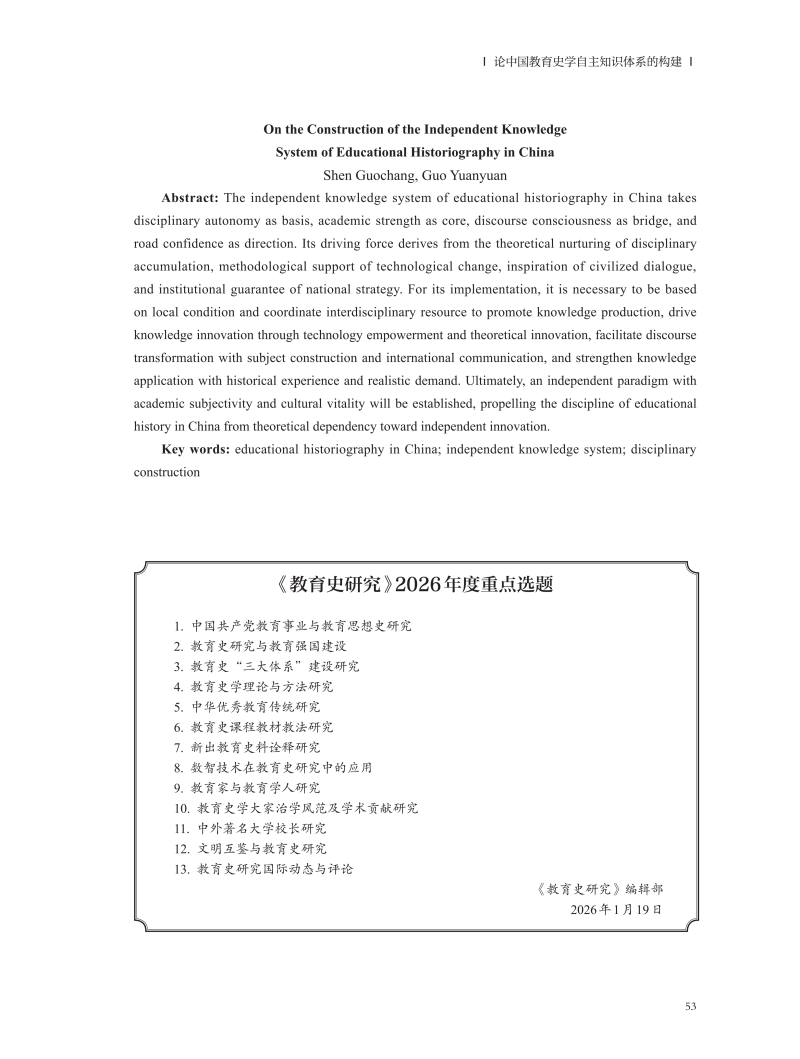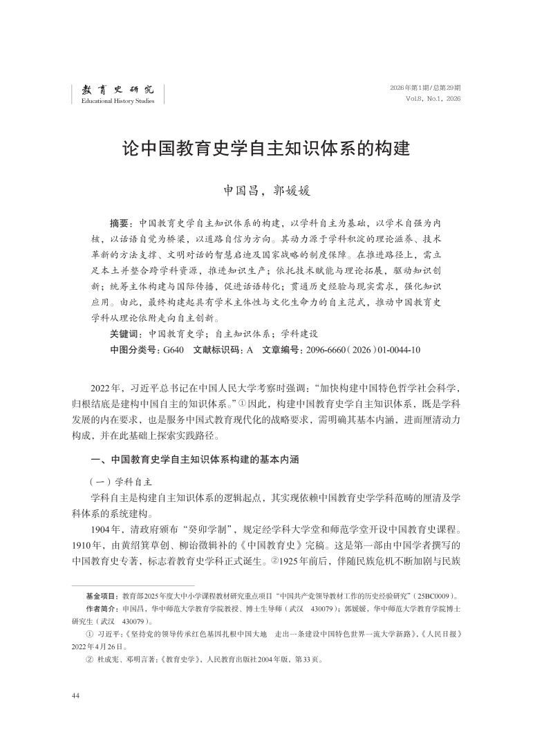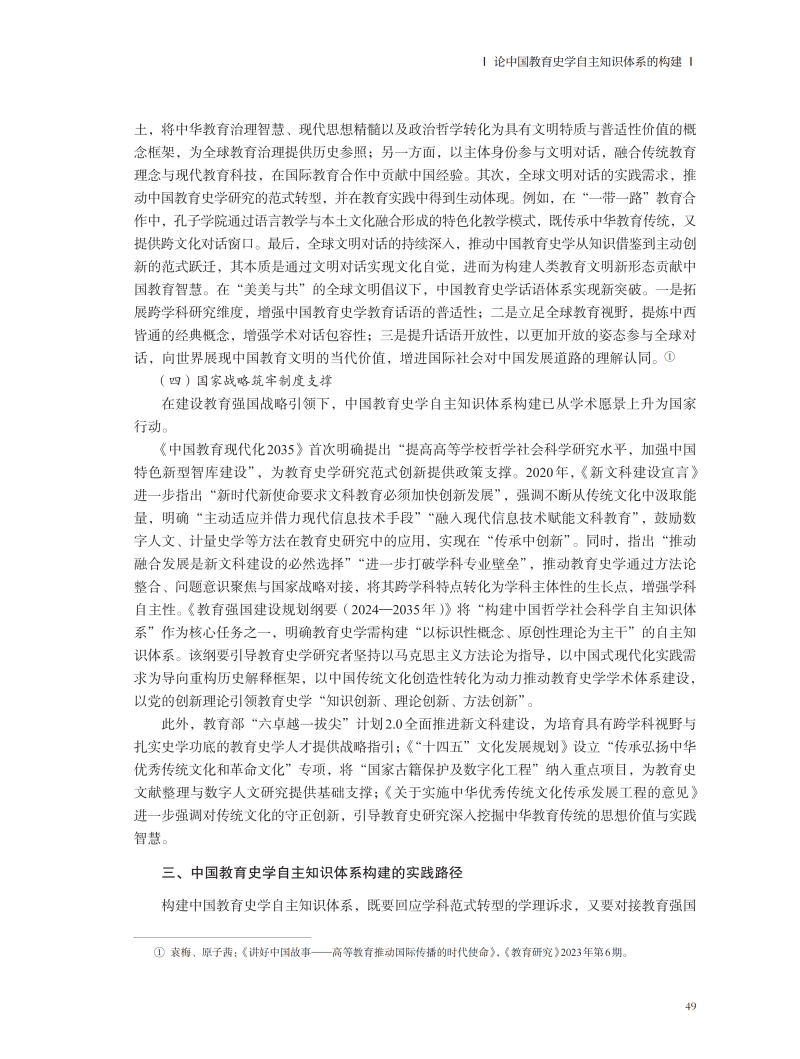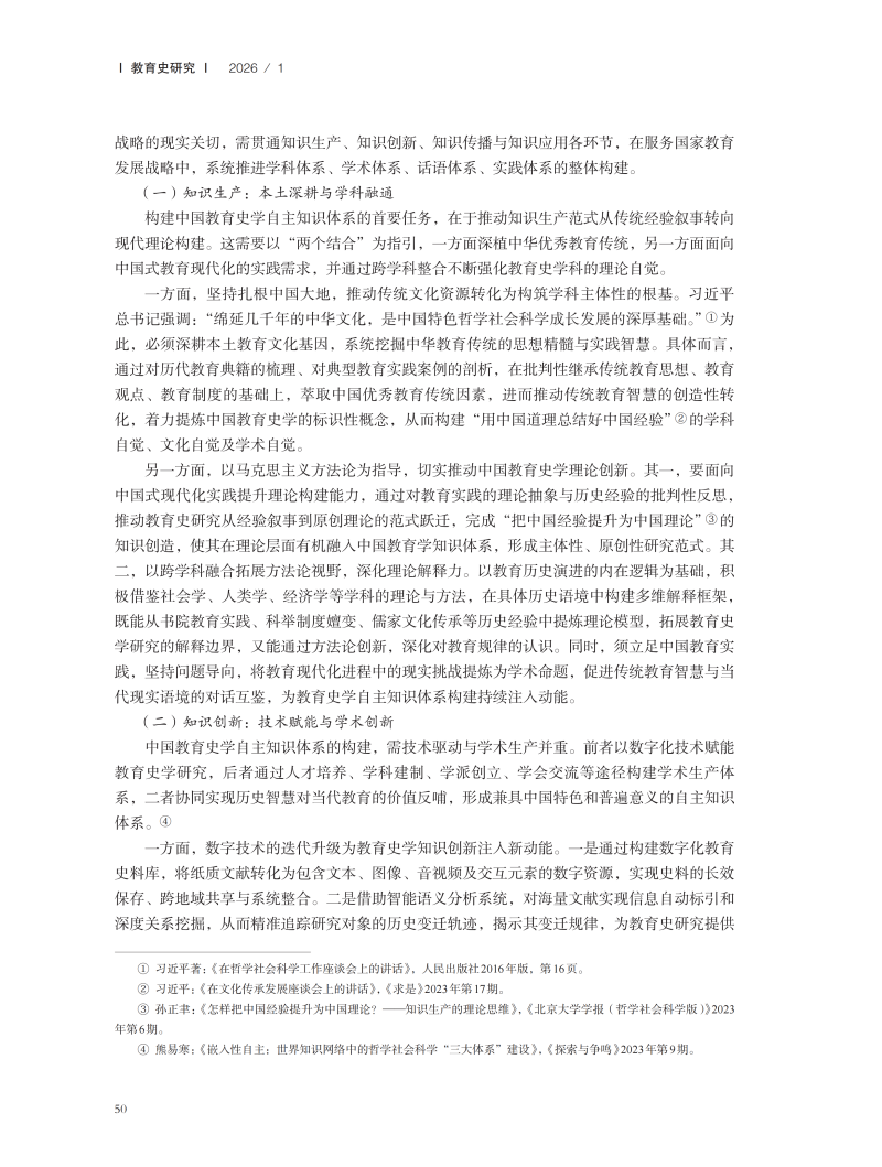 论中国教育史学自主知识体系的构建