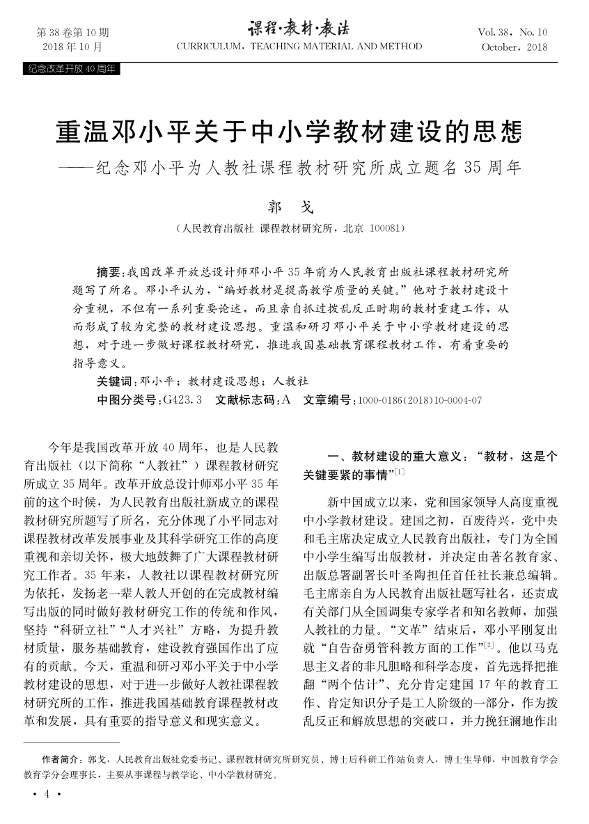 郭戈 人民教育出版社 课程教材研究所 2018-11-07