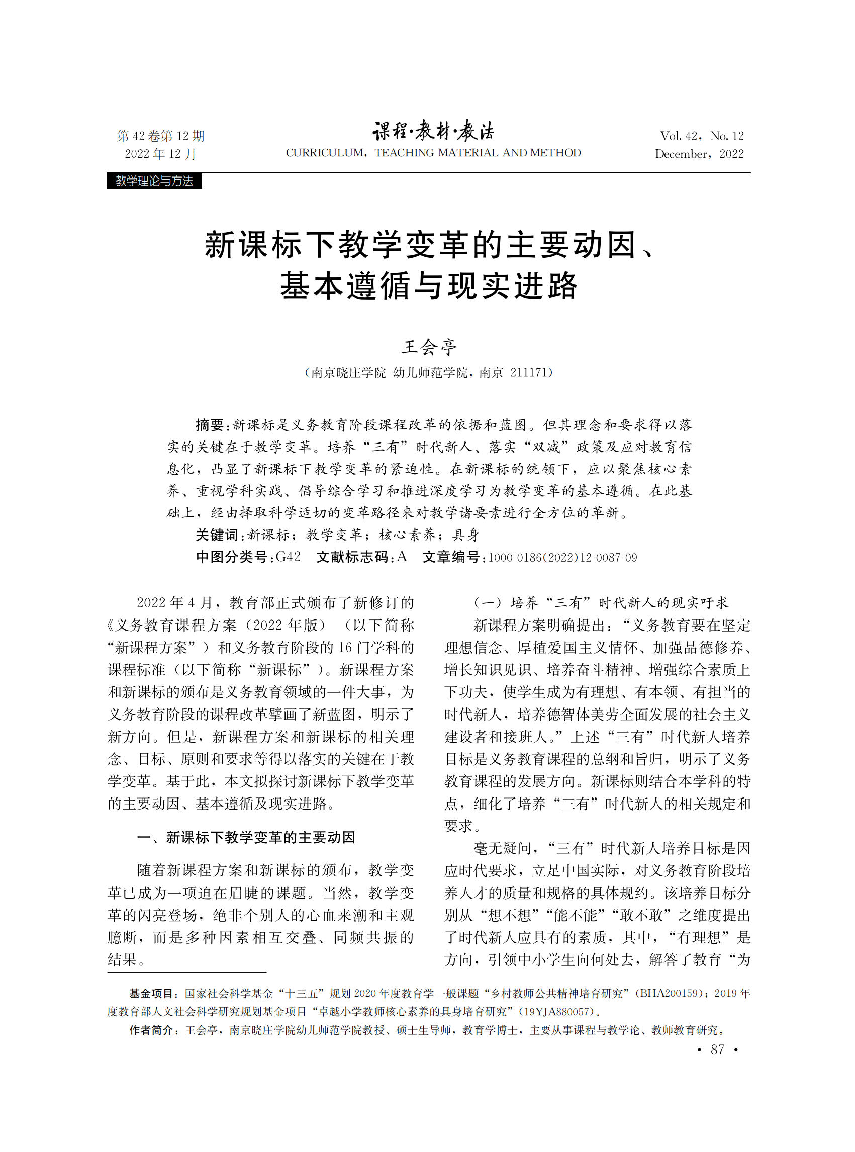 新课标下教学变革的主要动因、基本遵循与现实进路