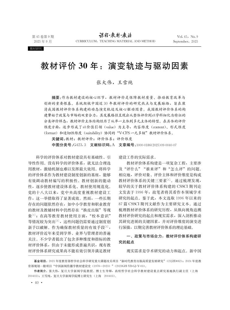 2025年第9期 我国教学论教材中的“中国经验”样态及其升华