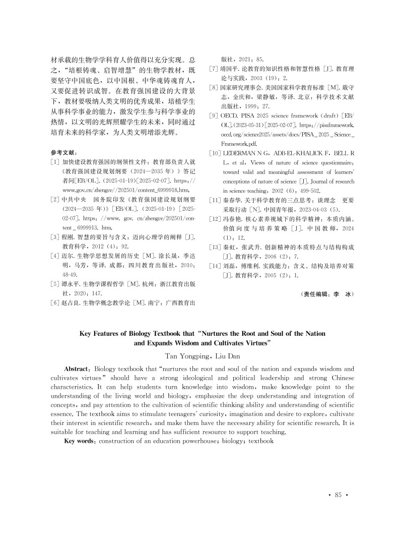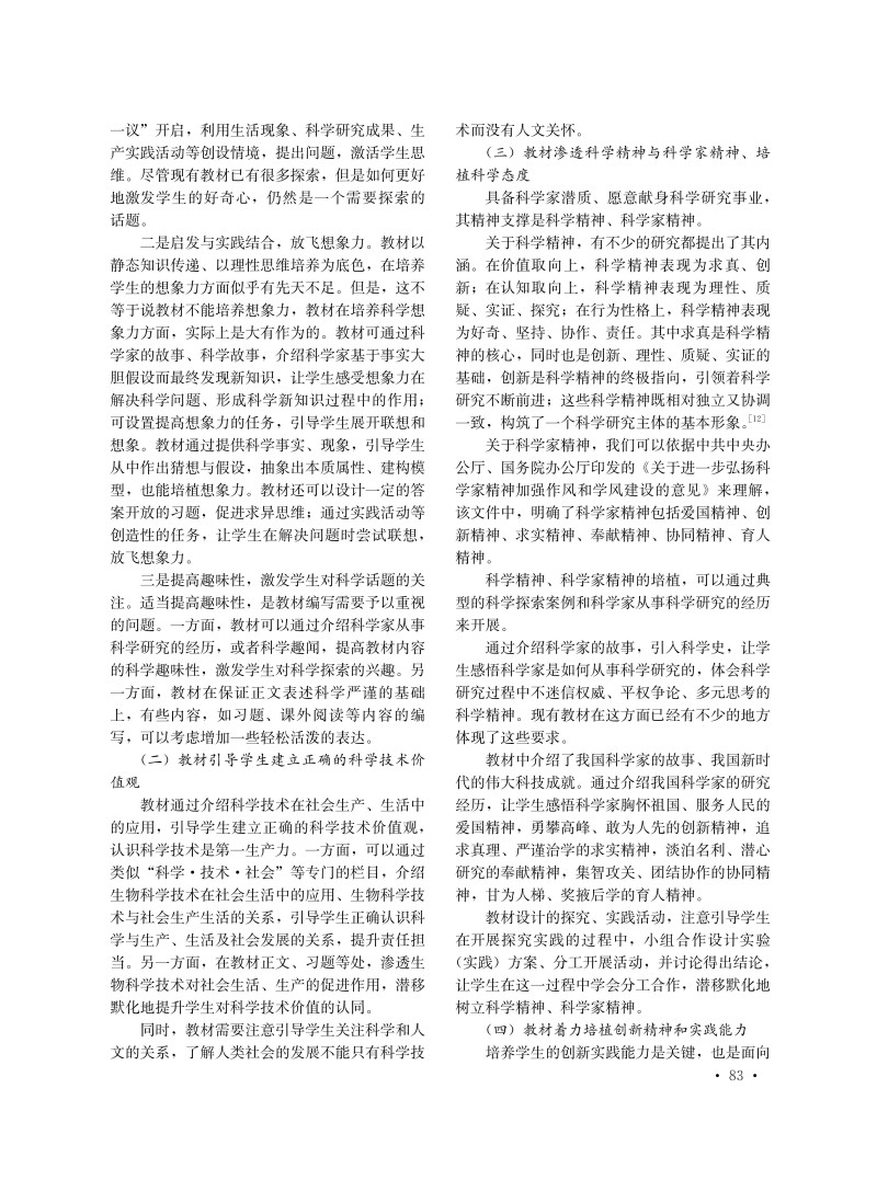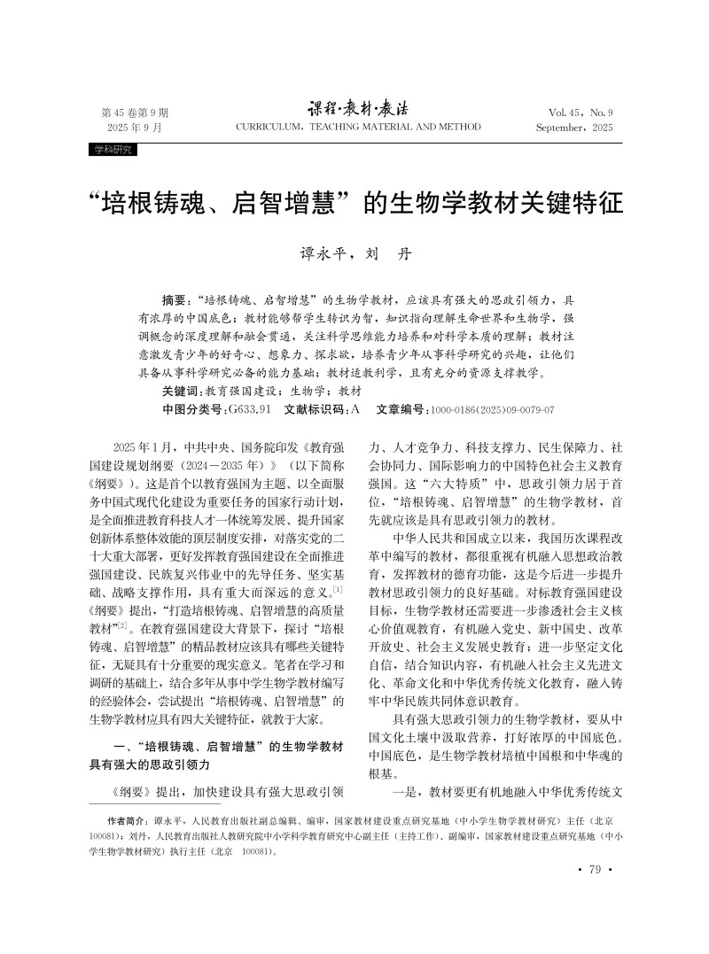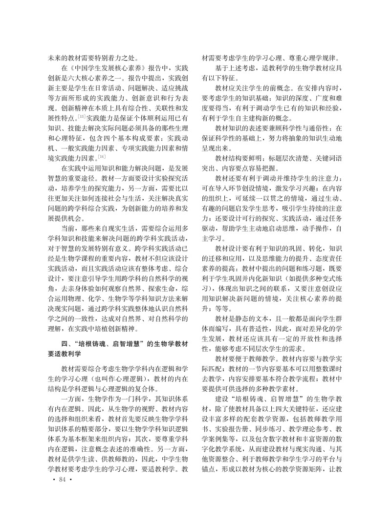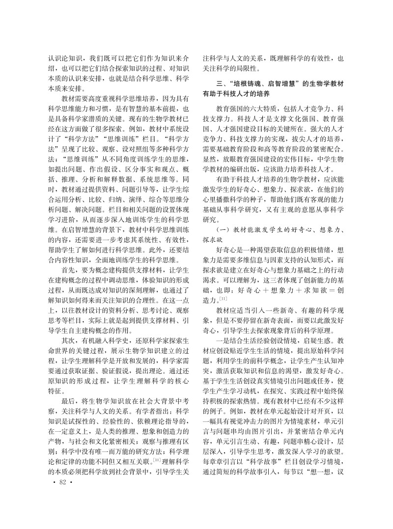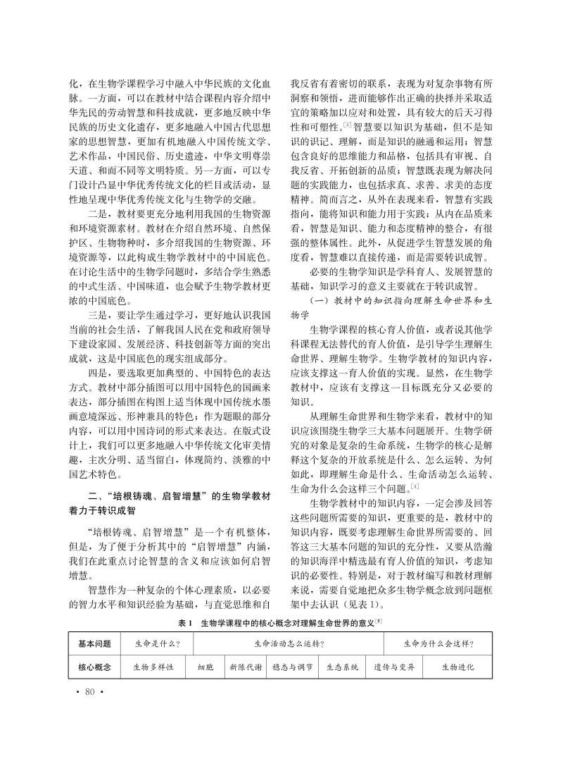 “培根铸魂、启智增慧”的生物学教材关键特征