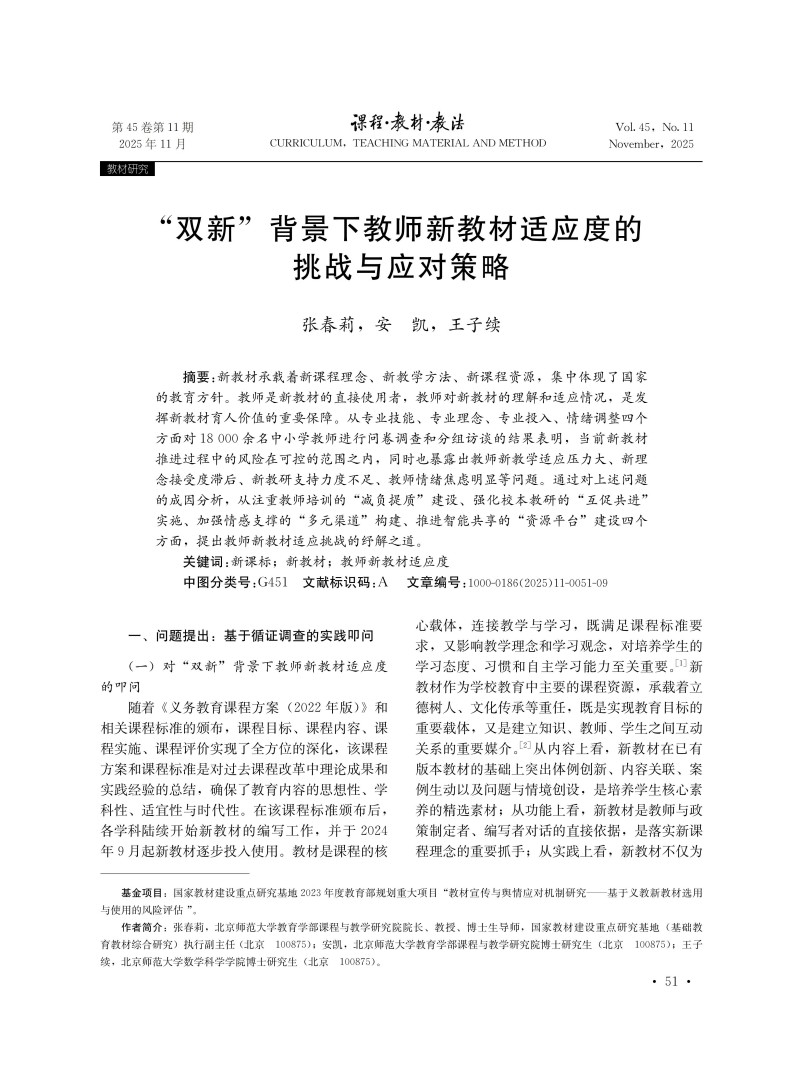 “双新”背景下教师新教材适应度的挑战与应对策略