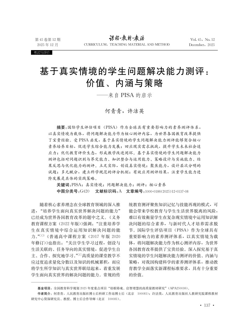 基于真实情境的学生问题解决能力测评:价值、内涵与策略