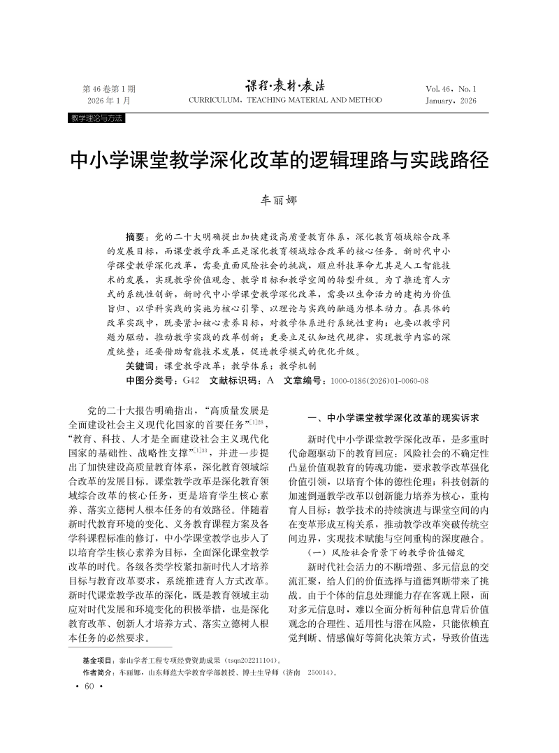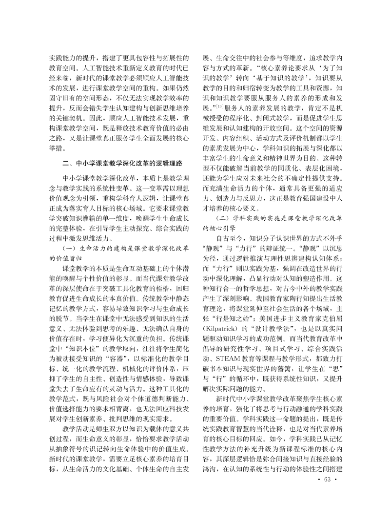 中小学课堂教学深化改革的逻辑理路与实践路径