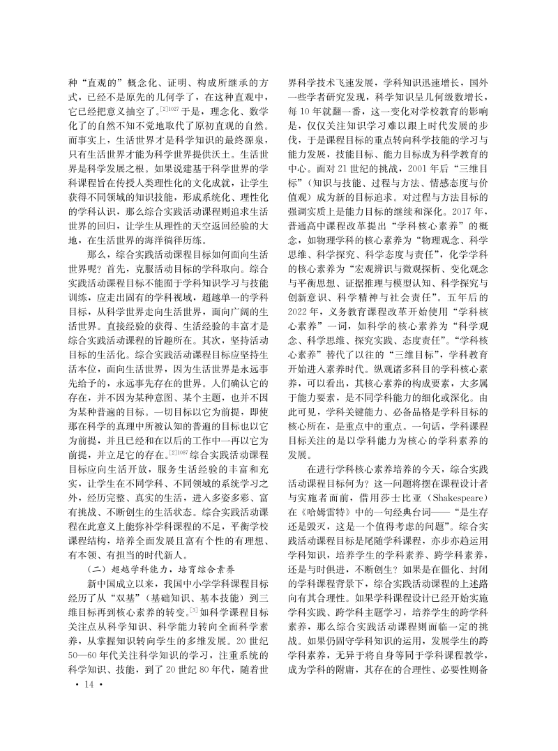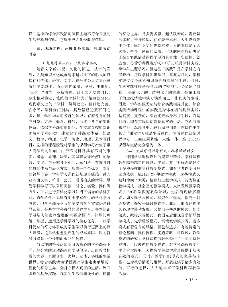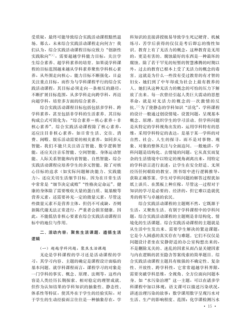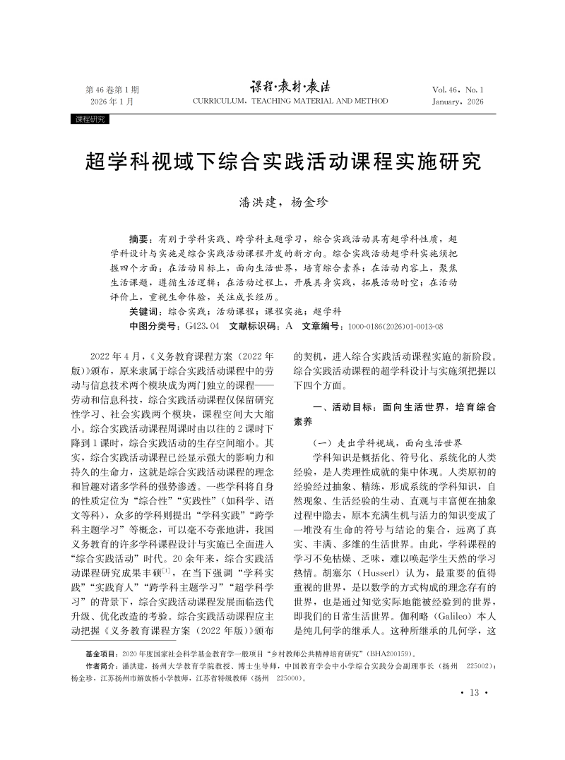 超学科视域下综合实践活动课程实施研究
