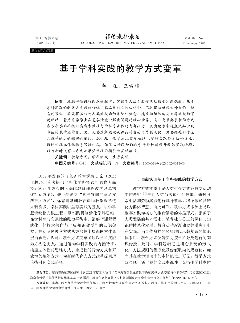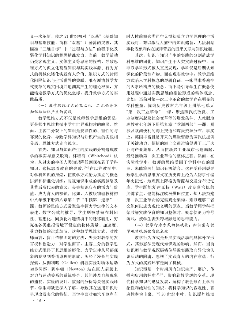 基于学科实践的教学方式变革