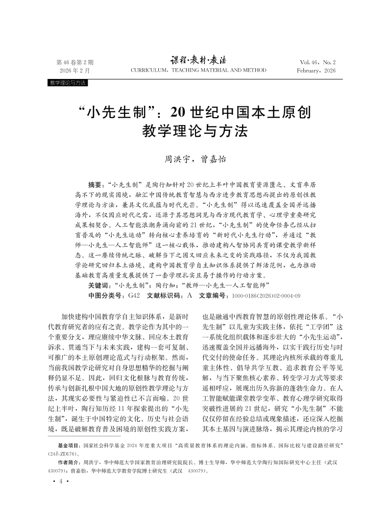 “小先生制”:20世纪中国本土原创教学理论与方法