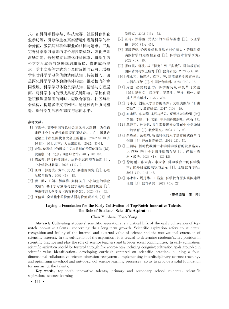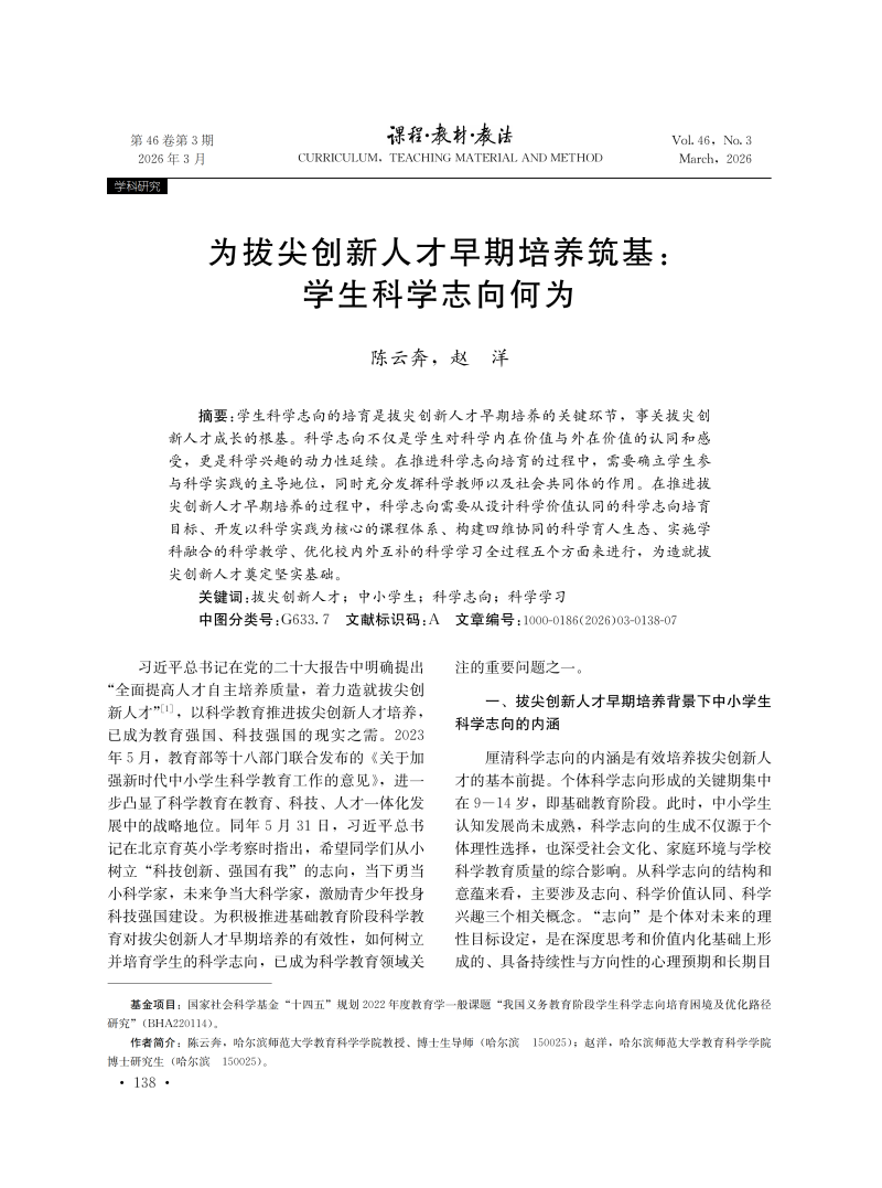 为拔尖创新人才早期培养筑基:学生科学志向何为