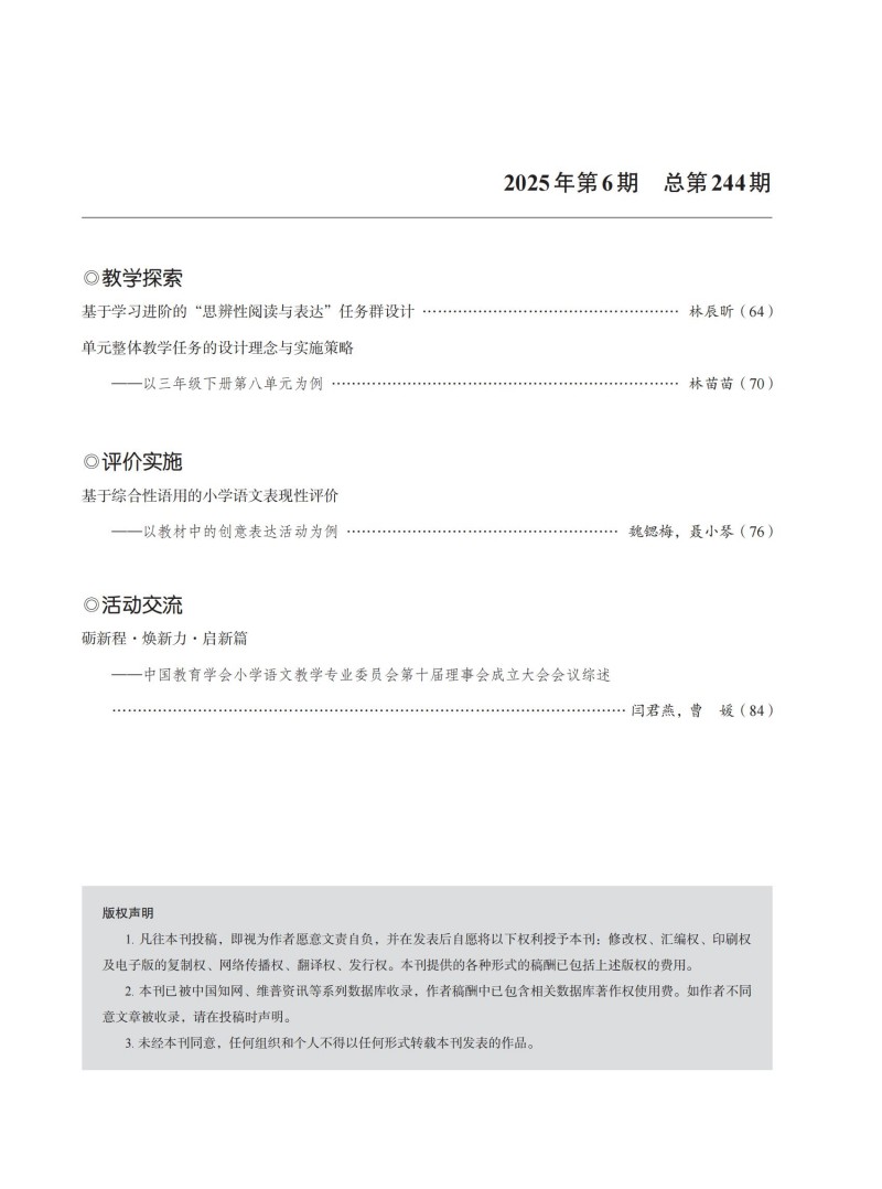 《小学语文》2025年第7期(总第245期)