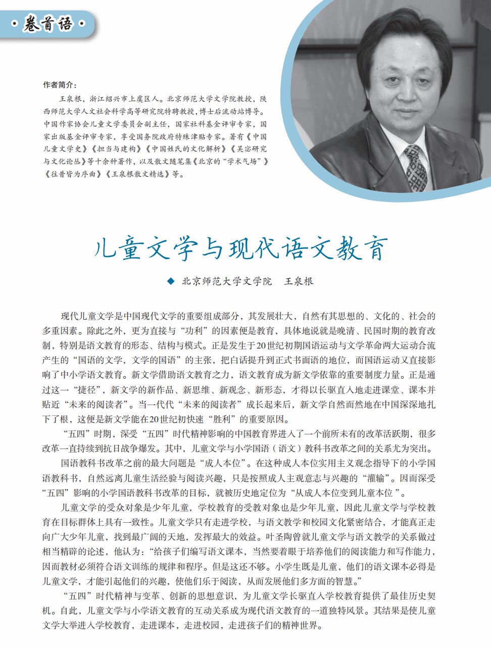 儿童文学与现代语文教育