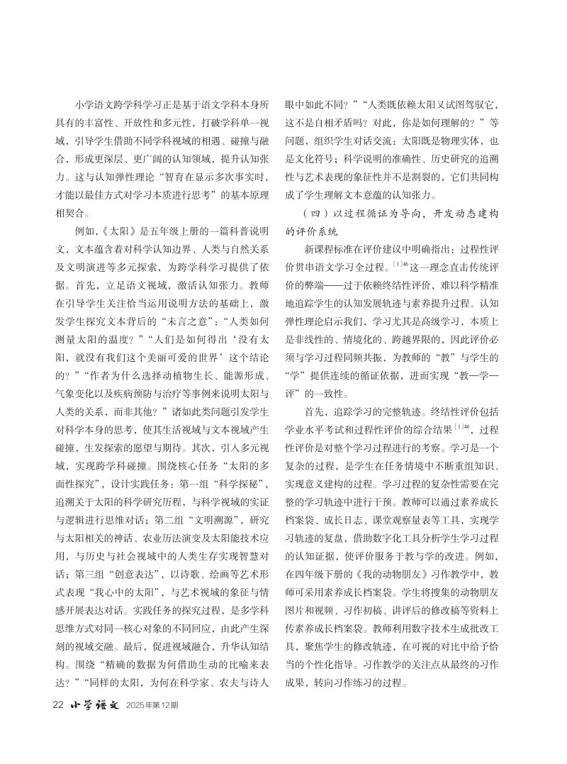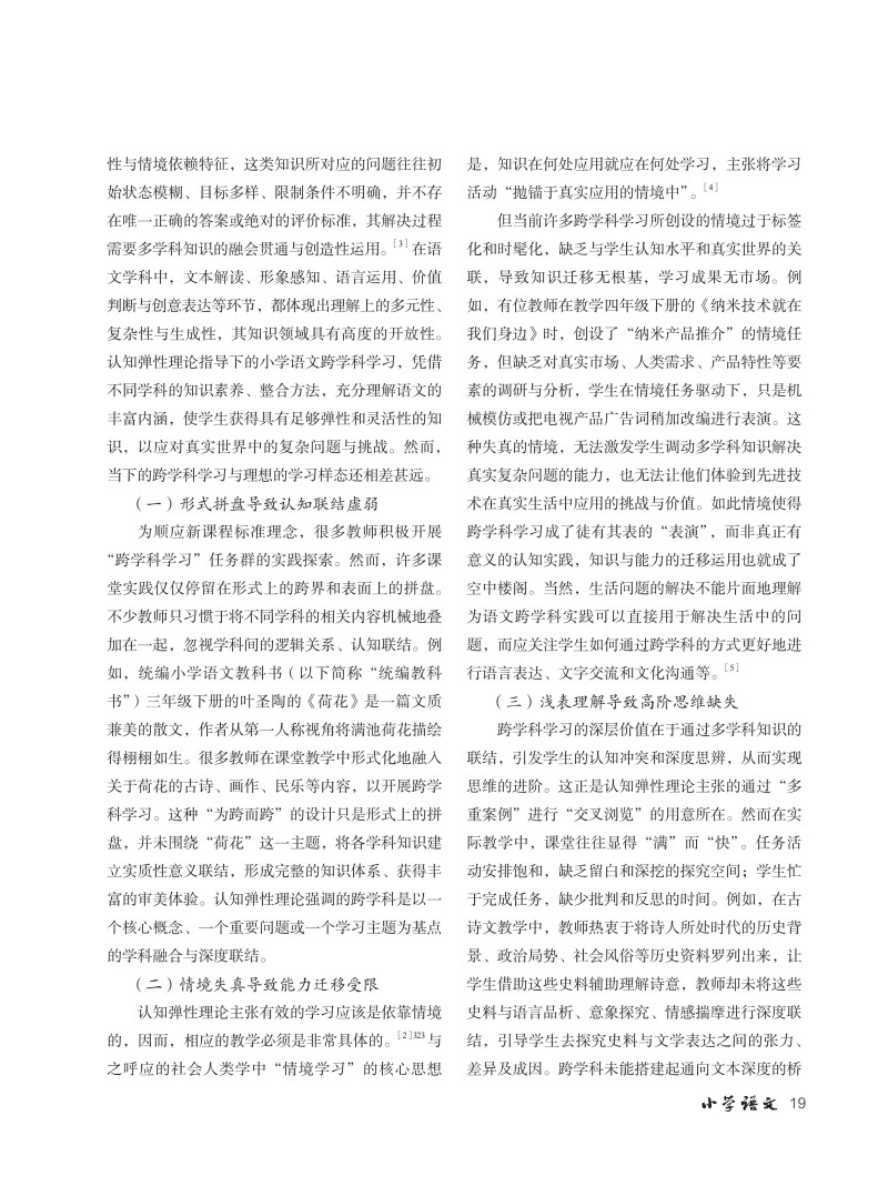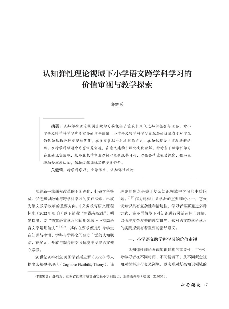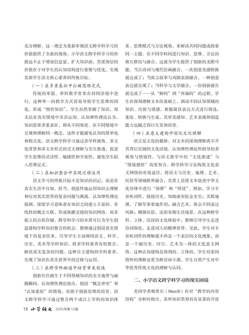 认知弹性理论视域下小学语文跨学科学习的价值审视与教学探索