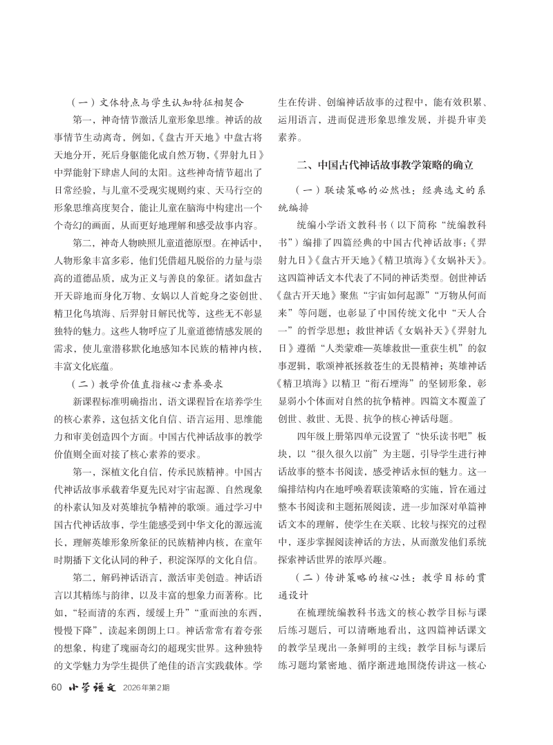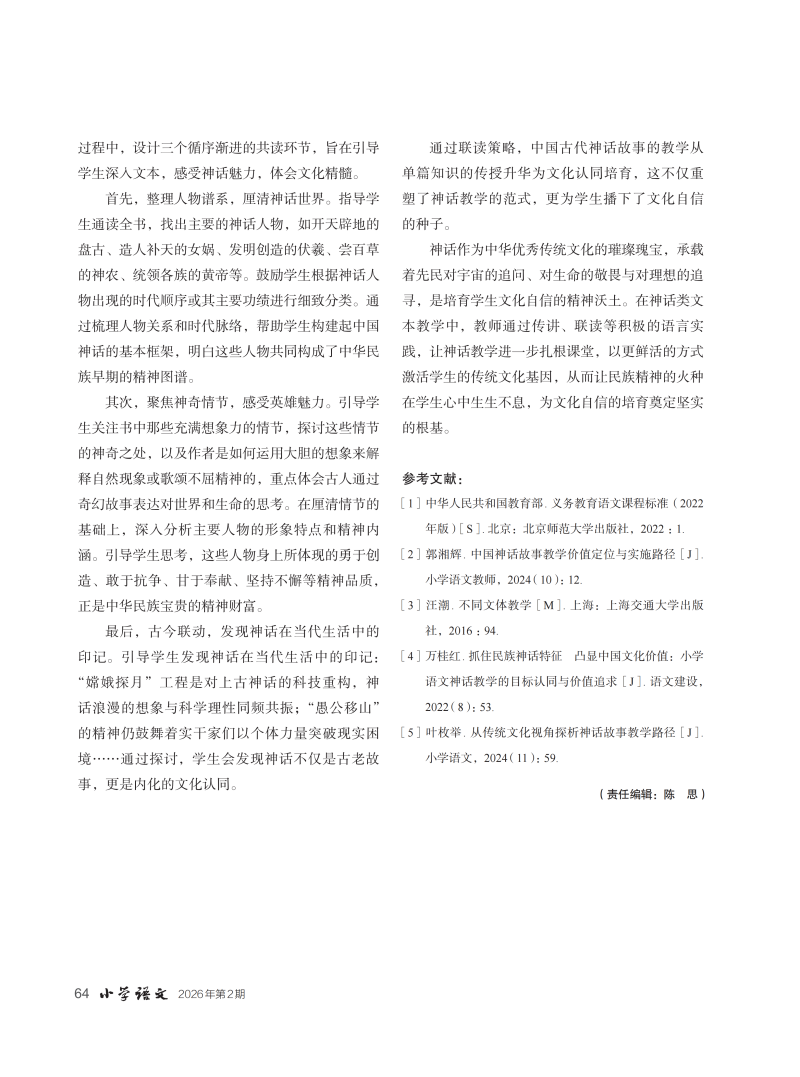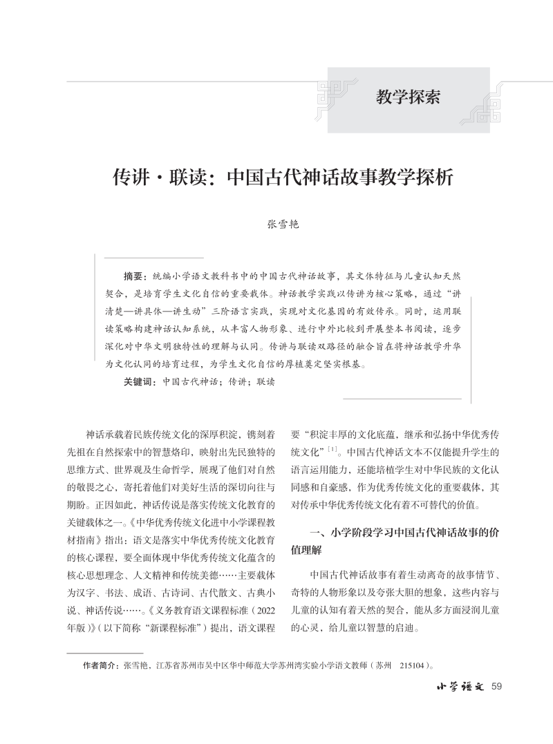 传讲·联读:中国古代神话故事教学探析