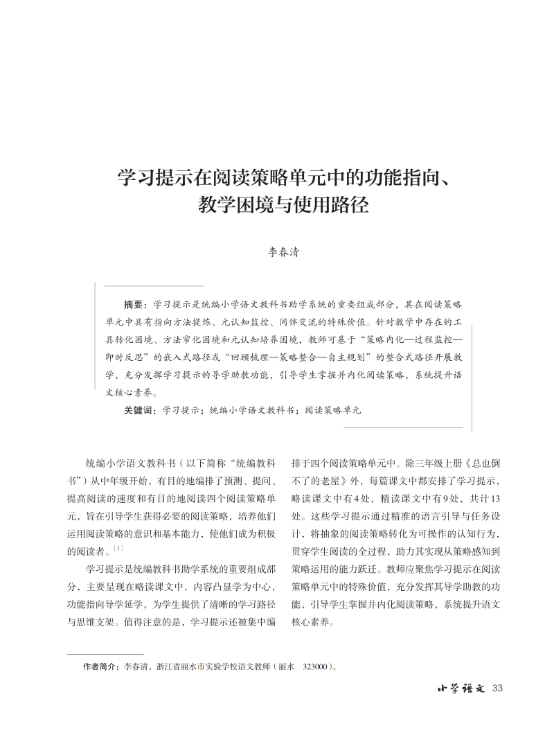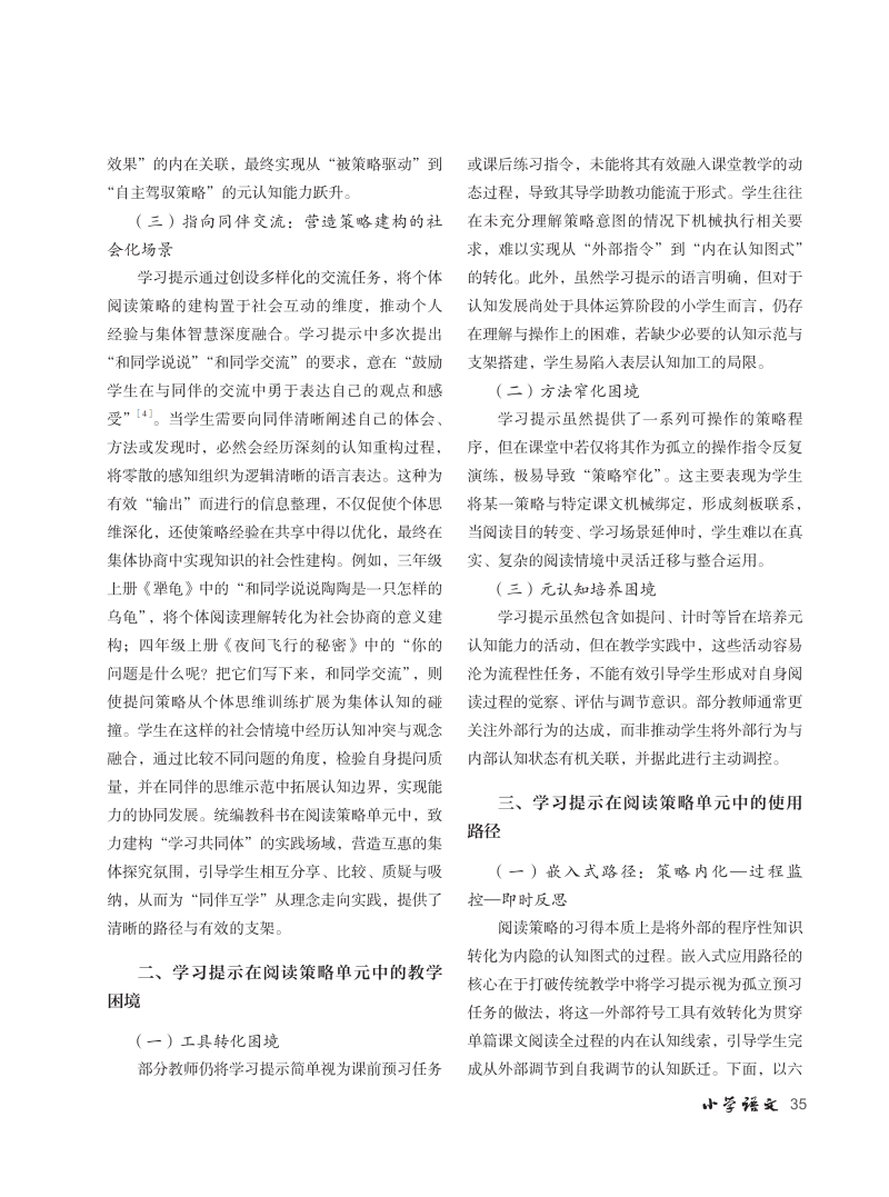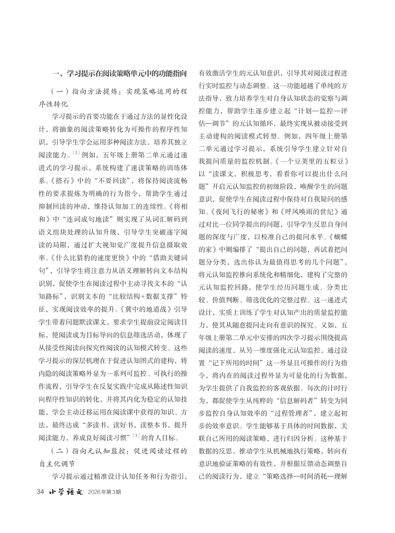 学习提示在阅读策略单元中的功能指向、教学困境与使用路径