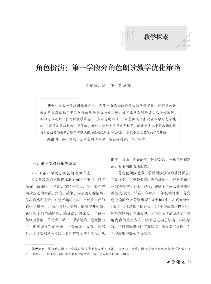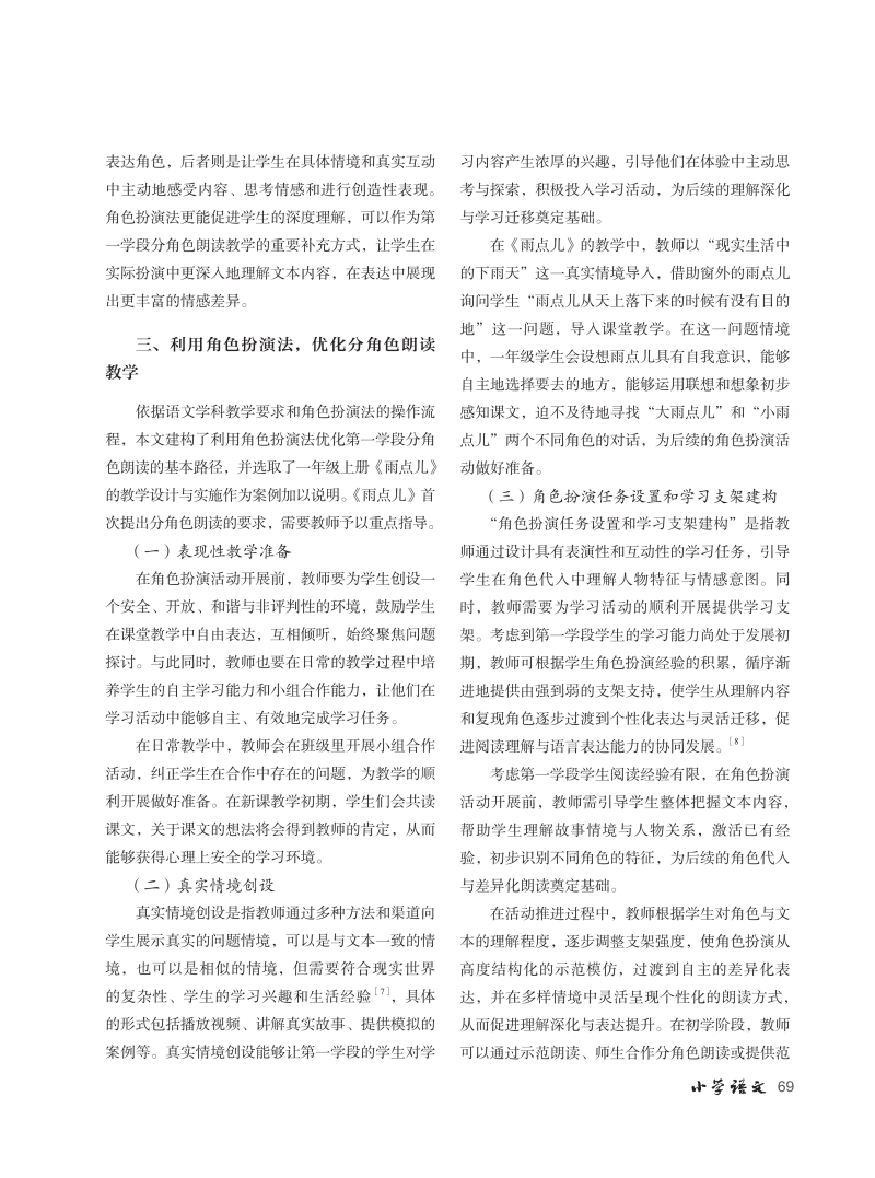 角色扮演:第一学段分角色朗读教学优化策略
