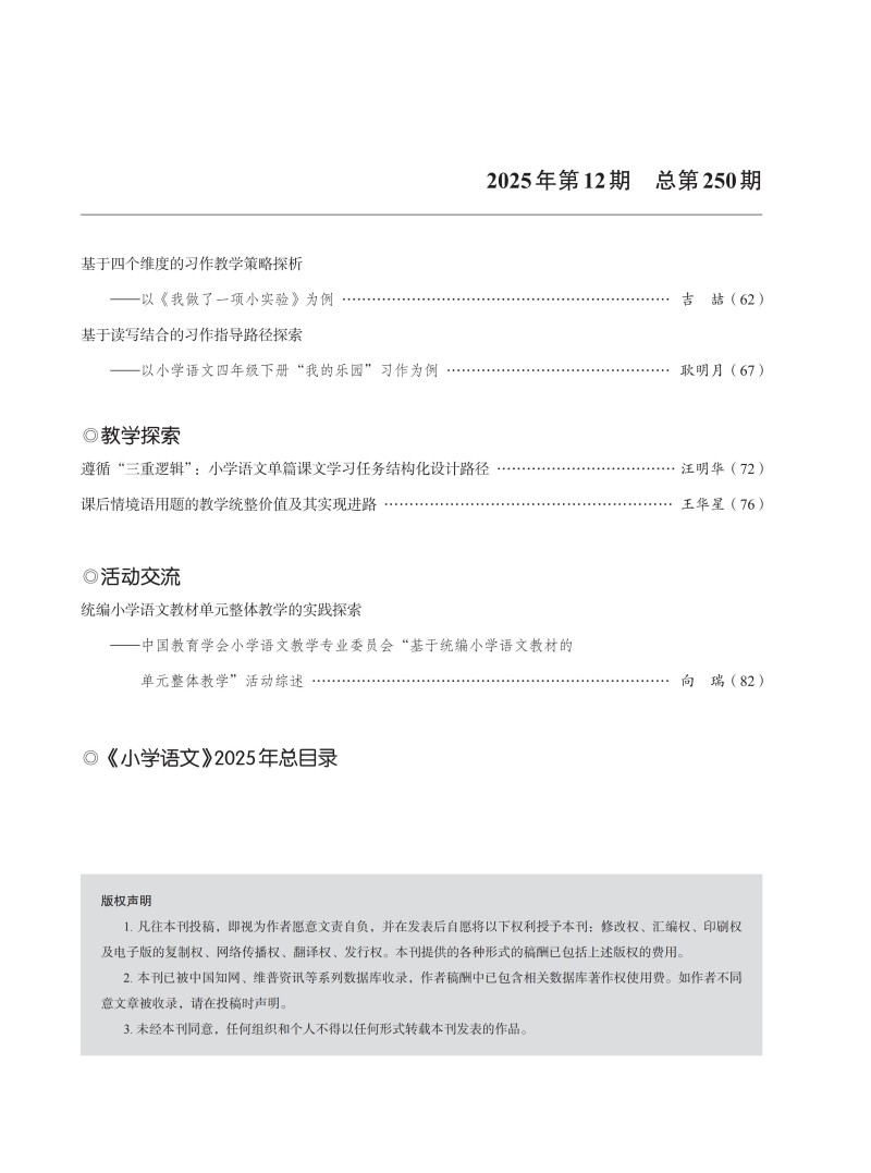 《小学语文》2025年第12期(总第250期)