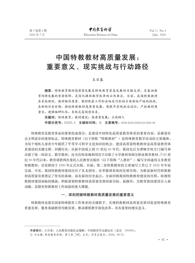 中国特教教材高质量发展:重要意义、现实挑战与行动路径
