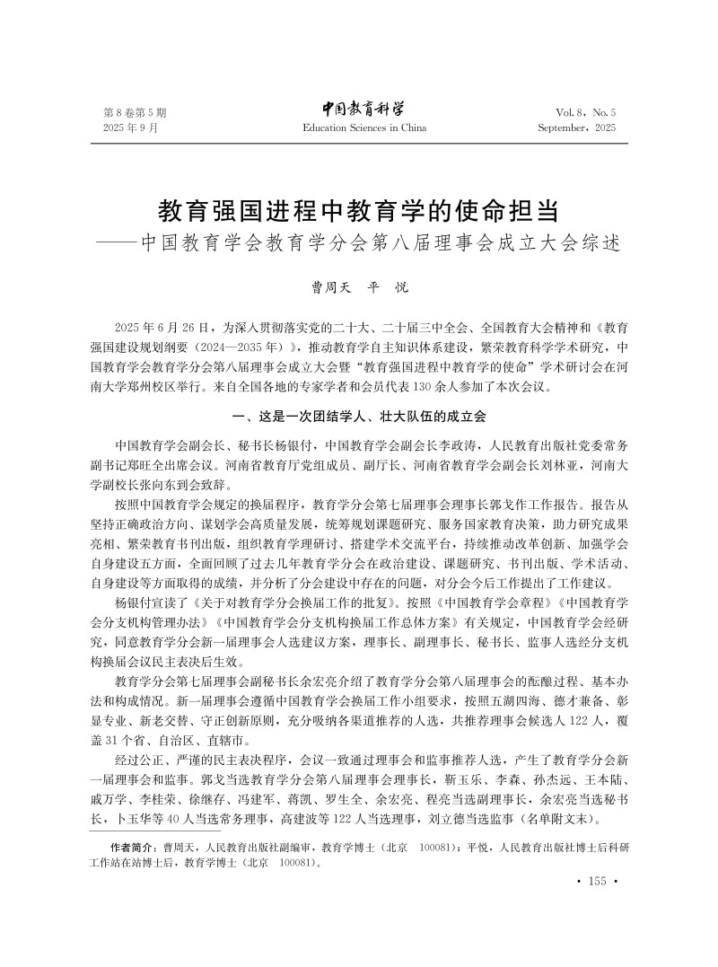 教育强国进程中教育学的使命担当——中国教育学会教育学分会第八届理事会成立大会综述