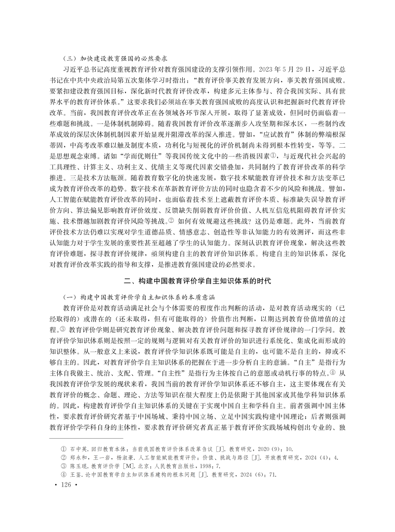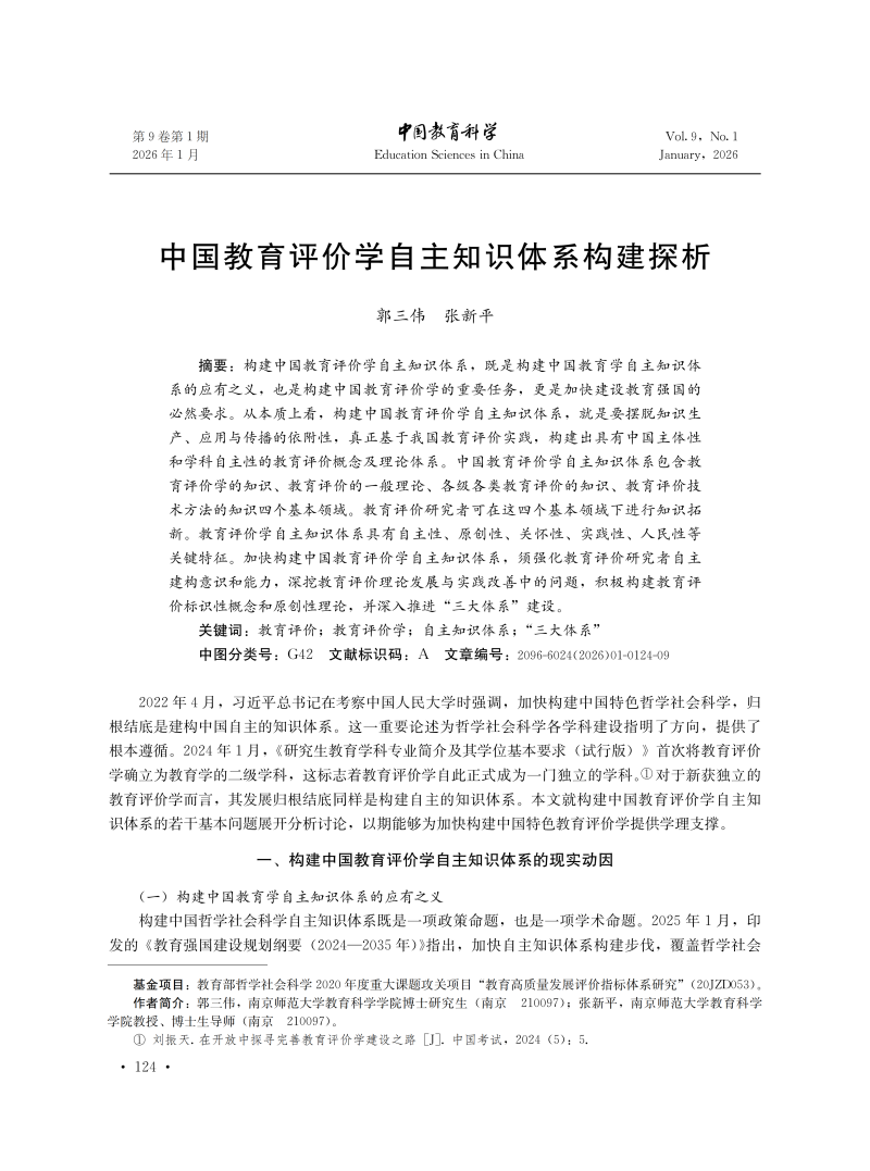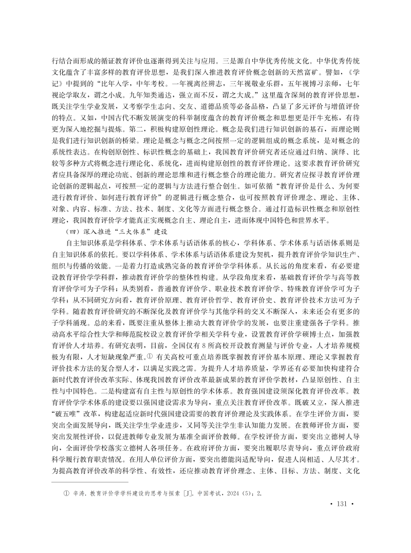 中国教育评价学自主知识体系构建探析