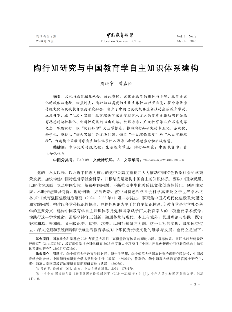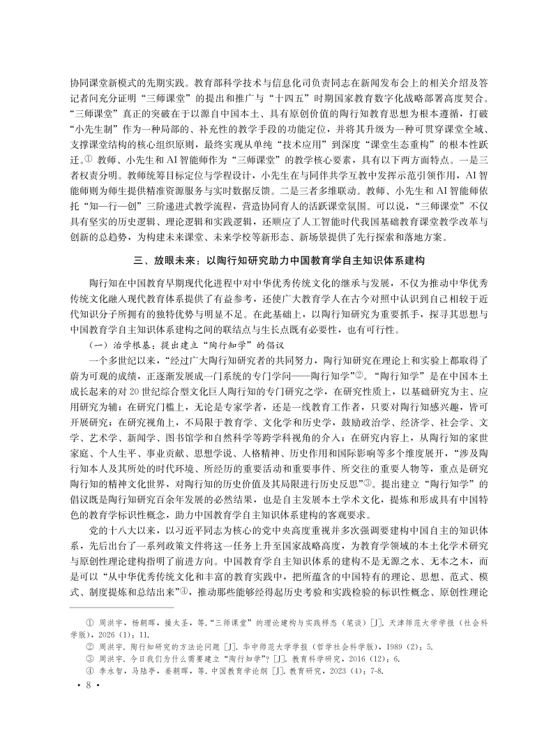 陶行知研究与中国教育学自主知识体系建构