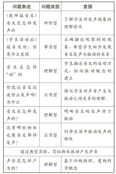 例如,围绕“声音是怎样产生的”这一核心问题,教师可以根据教学的进程提出若干子问题,如下表所示。