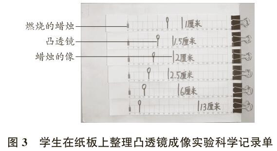 在科学探究活动中总少不了科学记录单的使用,有些探究活动可以完全让学生自己设计并使用科学记录单,但也有一些难度偏大的问题可由教师精心为学生设计记录单。 如图3所示的记录单组合,是不是很能支持学生的思维活动?