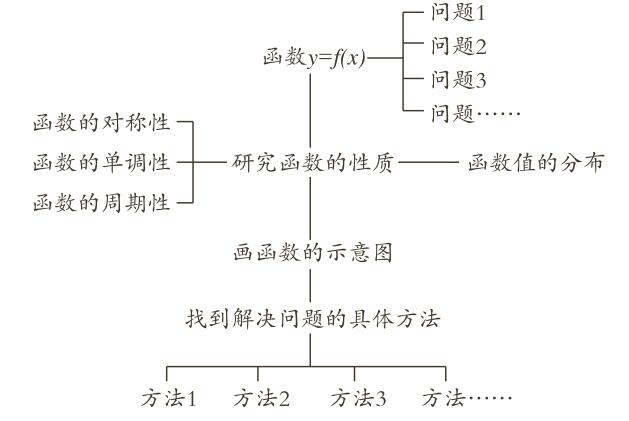 当我们面临一个函数问题的时候,一般来说都会给出函数的解析式,并围绕这个函数提出各种各样的问题,也就是学生所做的题目中的第一问、第二问、第三问。随着函 数解析式的变化,也就是给出各种各样的函数,学生所面临的函数问题更加五花八门。但是,无论是一个函数提出很多的问题还是不同的函数提出各种各样的问题,要想找到 解决这些问题的方法,都必须对和问题相关的函数性质作充分的研究。换句话说,只要给出函数的解析式,我们就要让学生掌握这个函数的所有性质,如函数的对称性、函数 的单调性、函数的周期性,也包括研究函数的零点进而分析函数值的分布。在这个基础上,学生就可以把这个函数的示意图画出来,通过这张图来直观地表达出函数所具有 的性质。以上研究是所有的函数问题都要经历的,是对这个函数性质的本质把握,不能因为所提出问题的不同而有选择地研究函数性质。这样的研究就是研究函数性质的一般 方法。