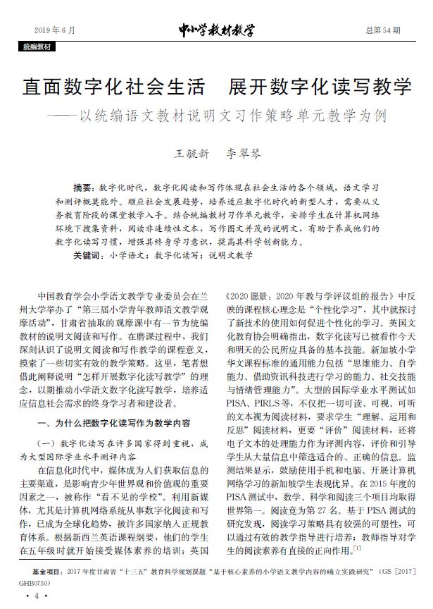 直面数字化社会生活 展开数字化读写教学