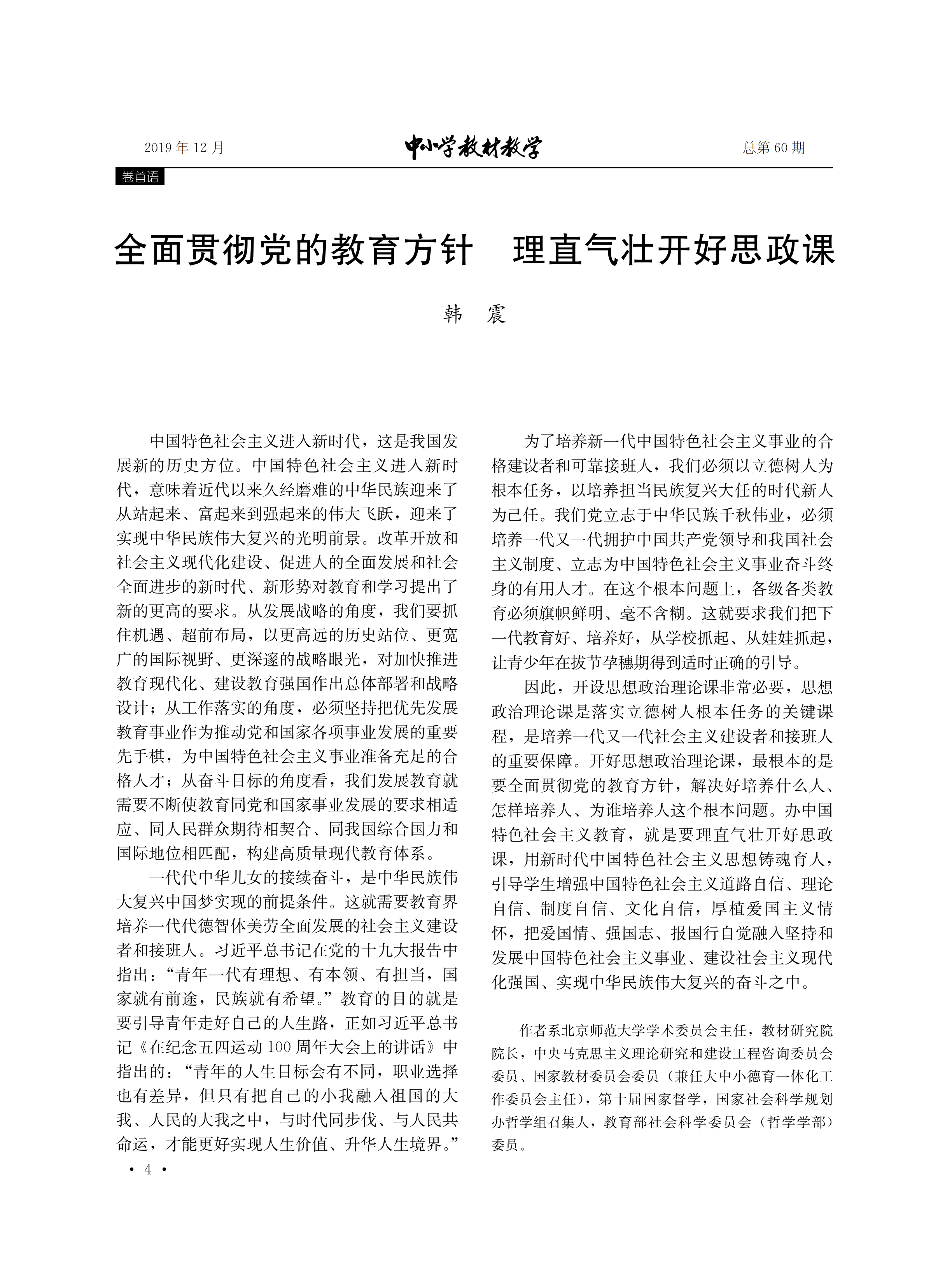 全面贯彻党的教育方针 理直气壮开好思政课