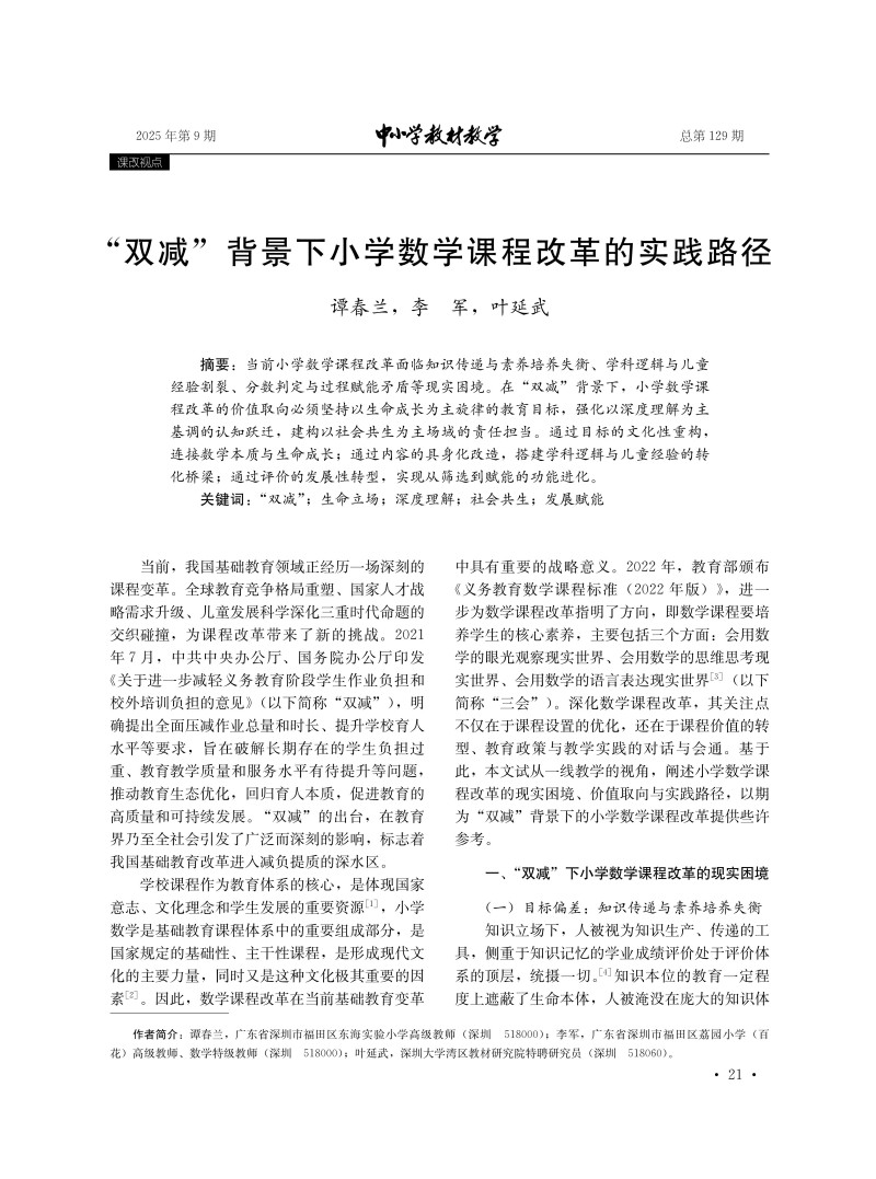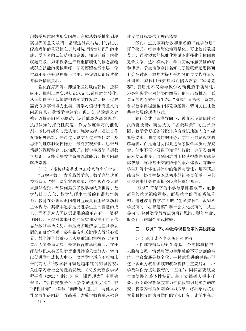 “双减”背景下小学数学课程改革的实践路径