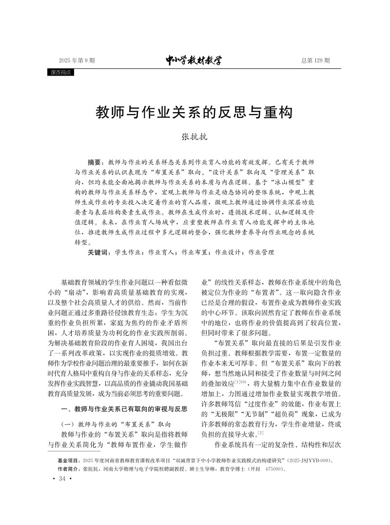 教师与作业关系的反思与重构