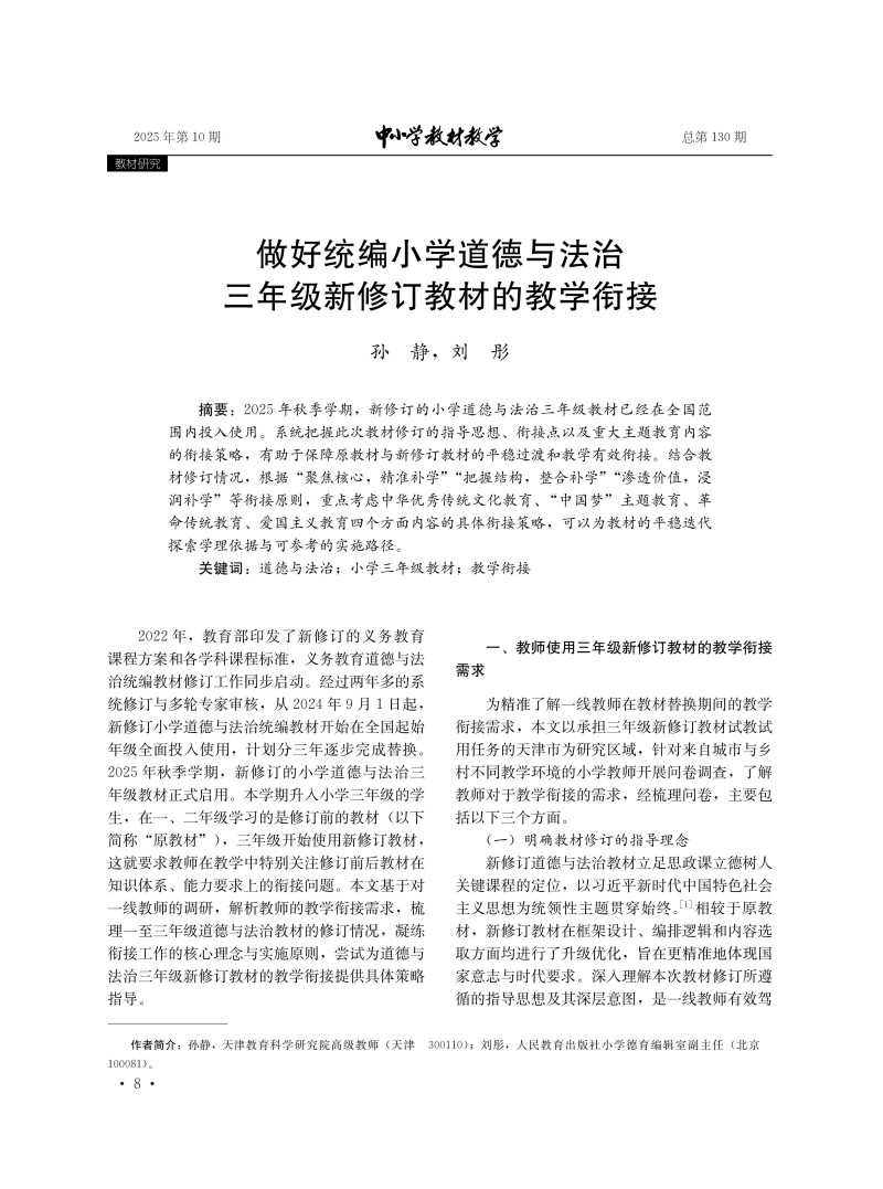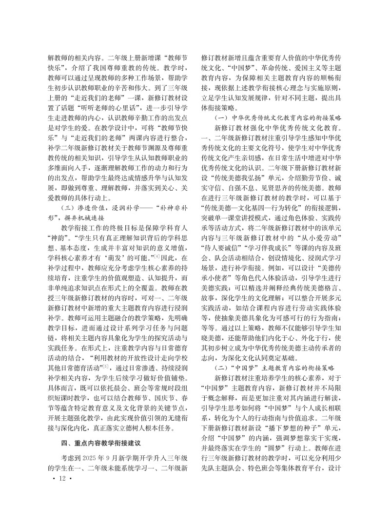 做好统编小学道德与法治三年级新修订教材的教学衔接