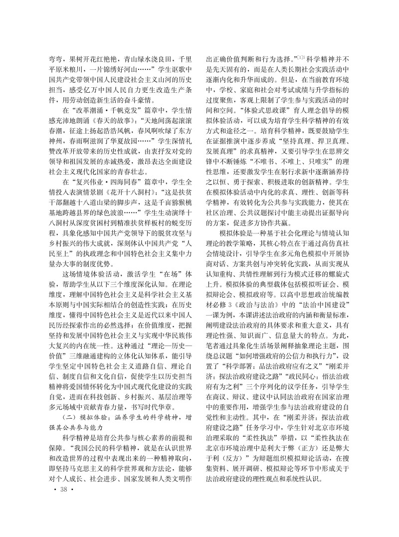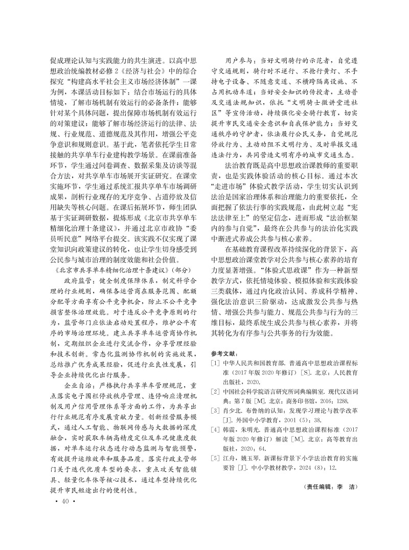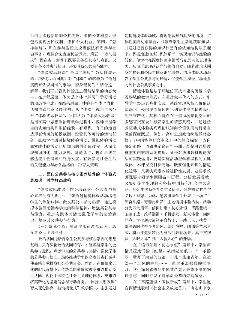 公共参与核心素养视域下“体验式思政课”的教学探索