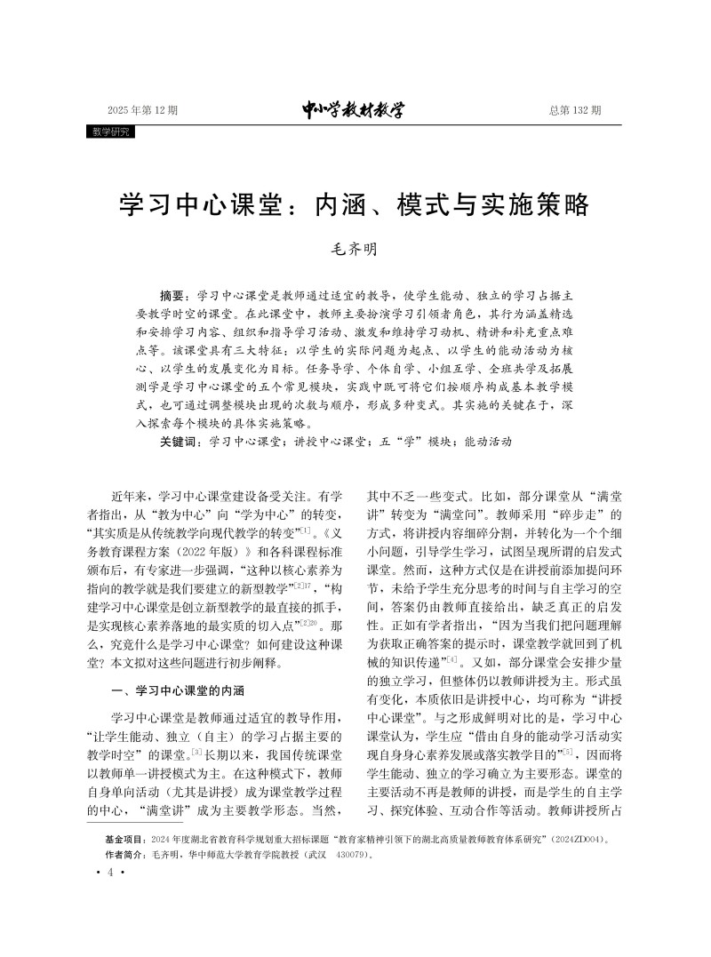 学习中心课堂:内涵、模式与实施策略