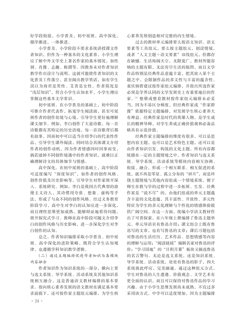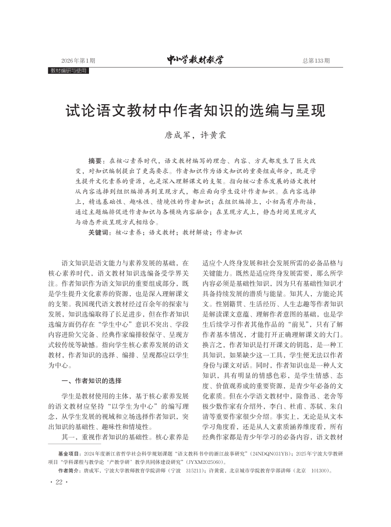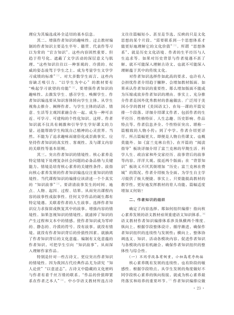 试论语文教材中作者知识的选编与呈现