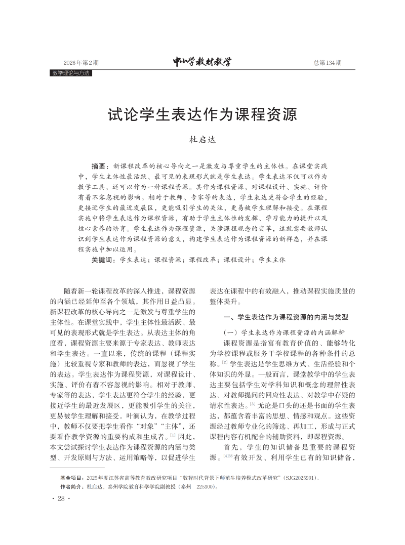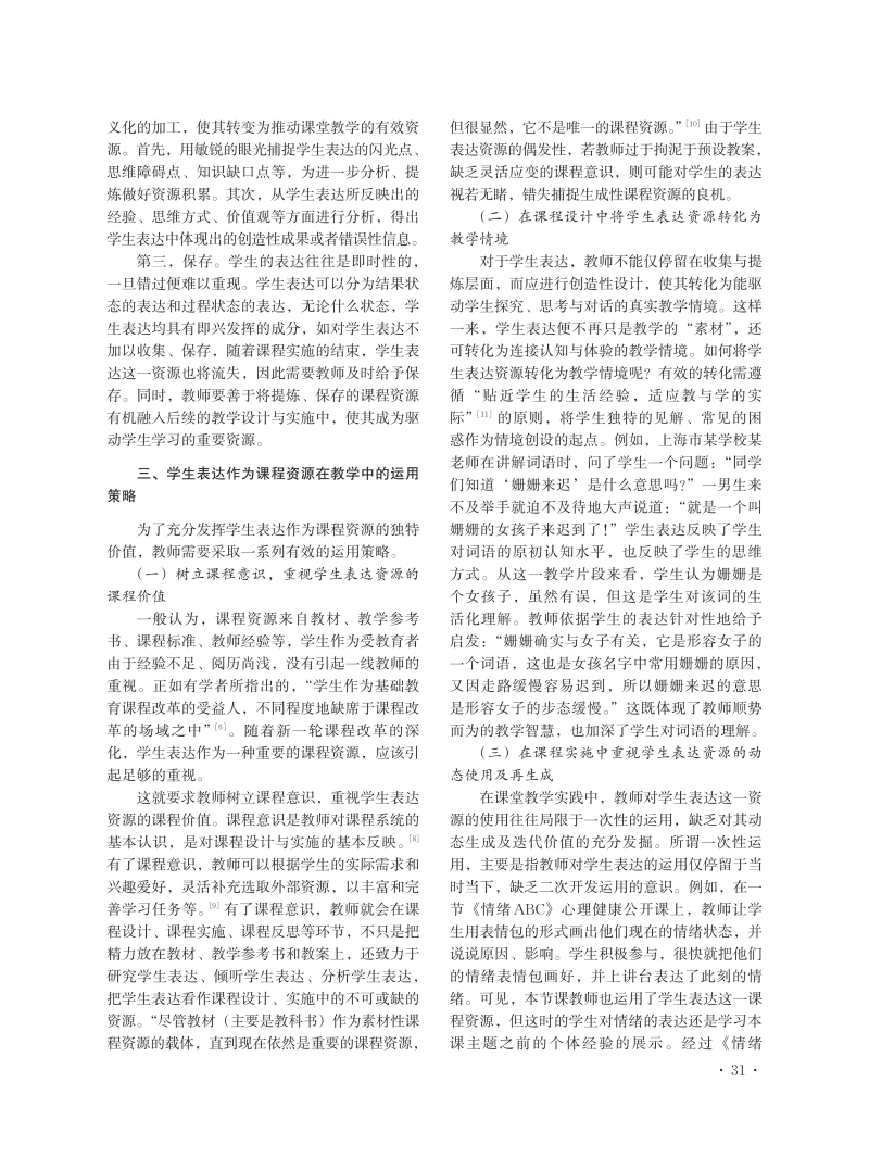试论学生表达作为课程资源
