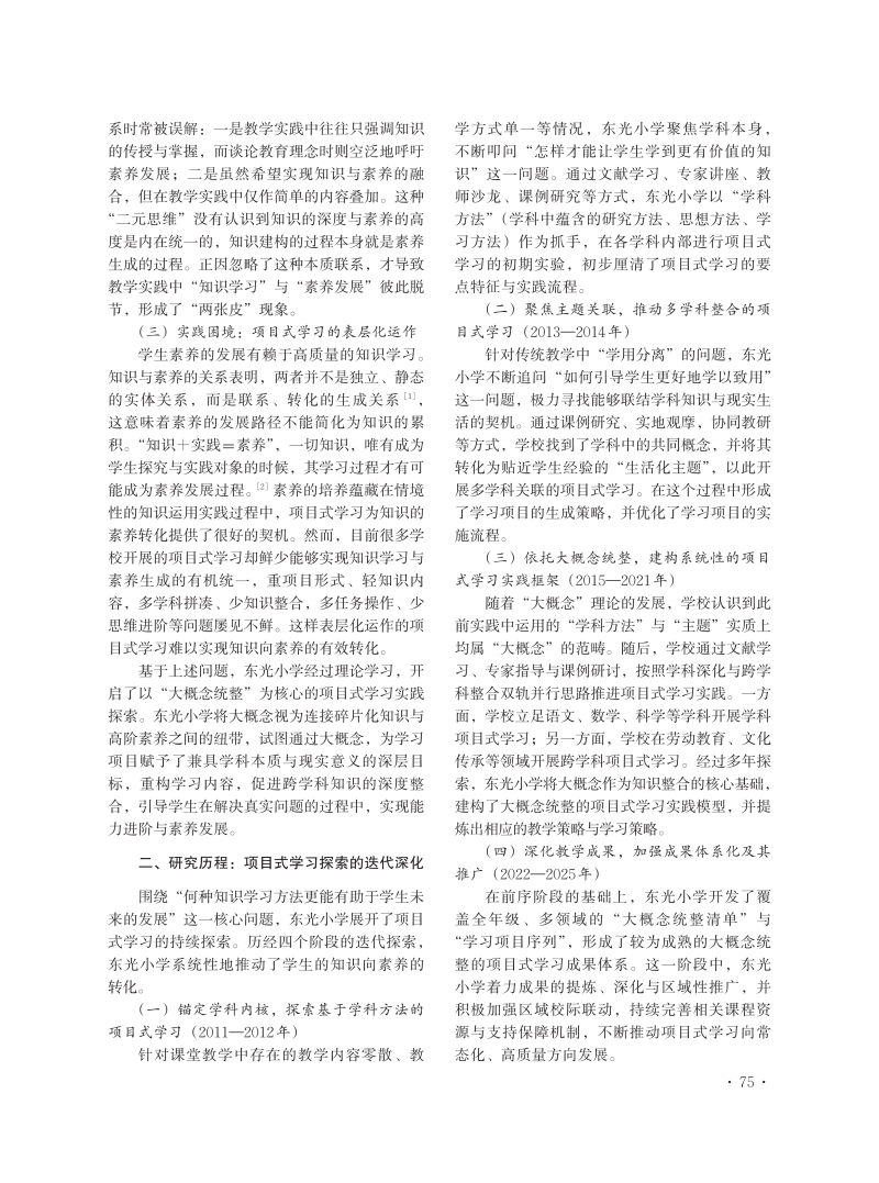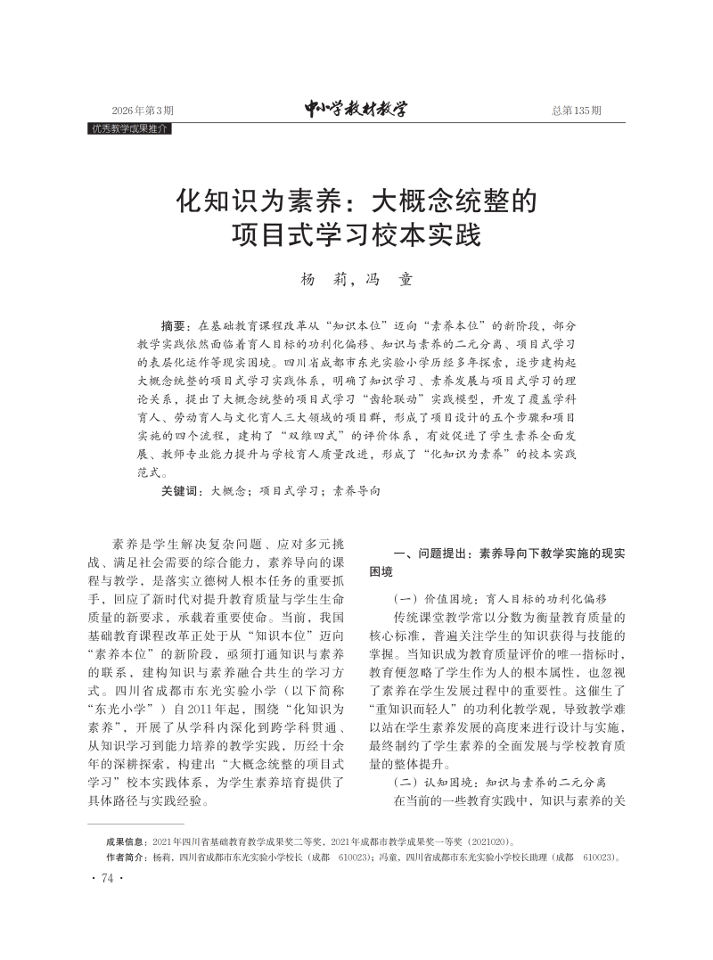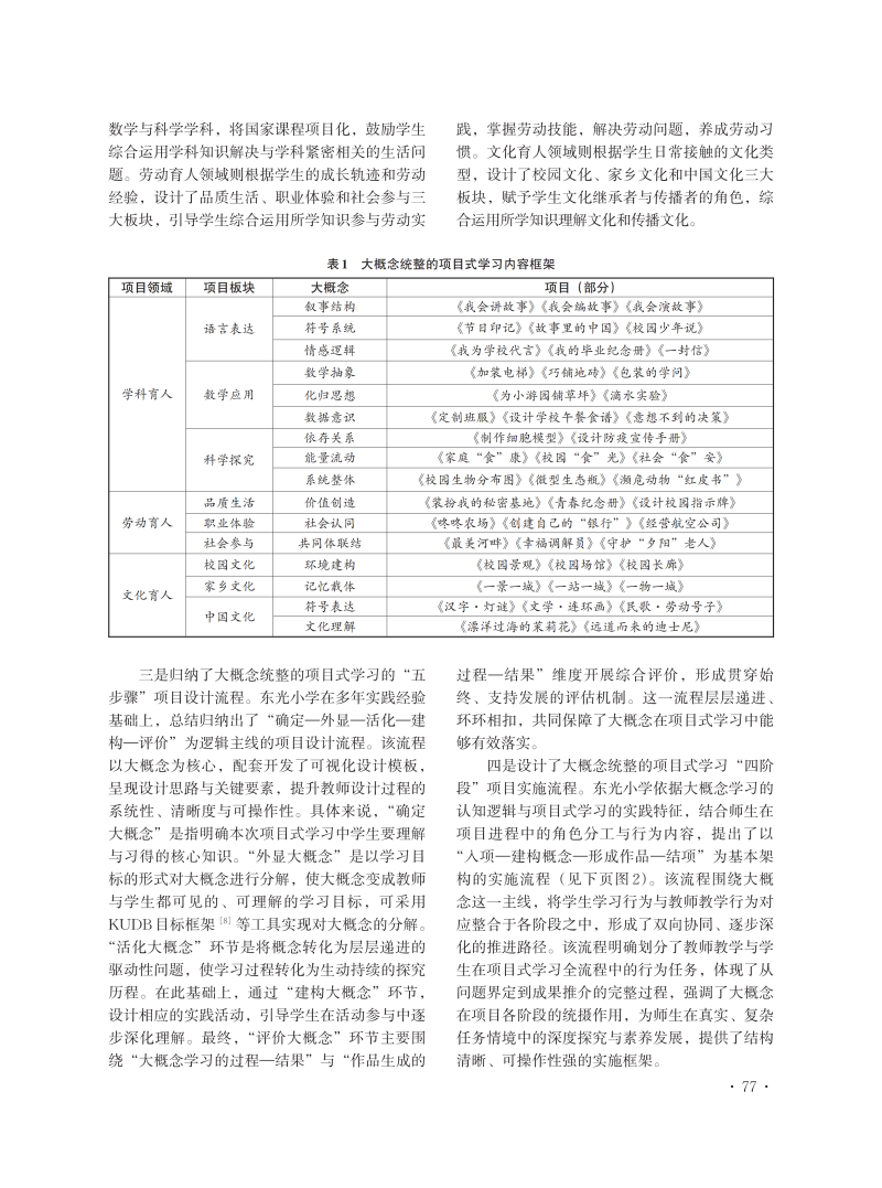化知识为素养:大概念统整的项目式学习校本实践
