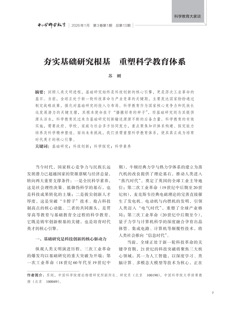 夯实基础研究根基重塑科学教育体系