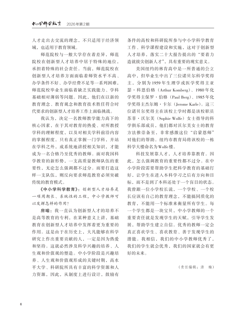 2026年第1期 夯实基础研究根基重塑科学教育体系