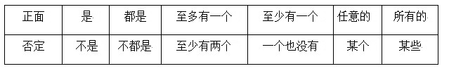 “非”命题最常见的几个正面词语的否定: