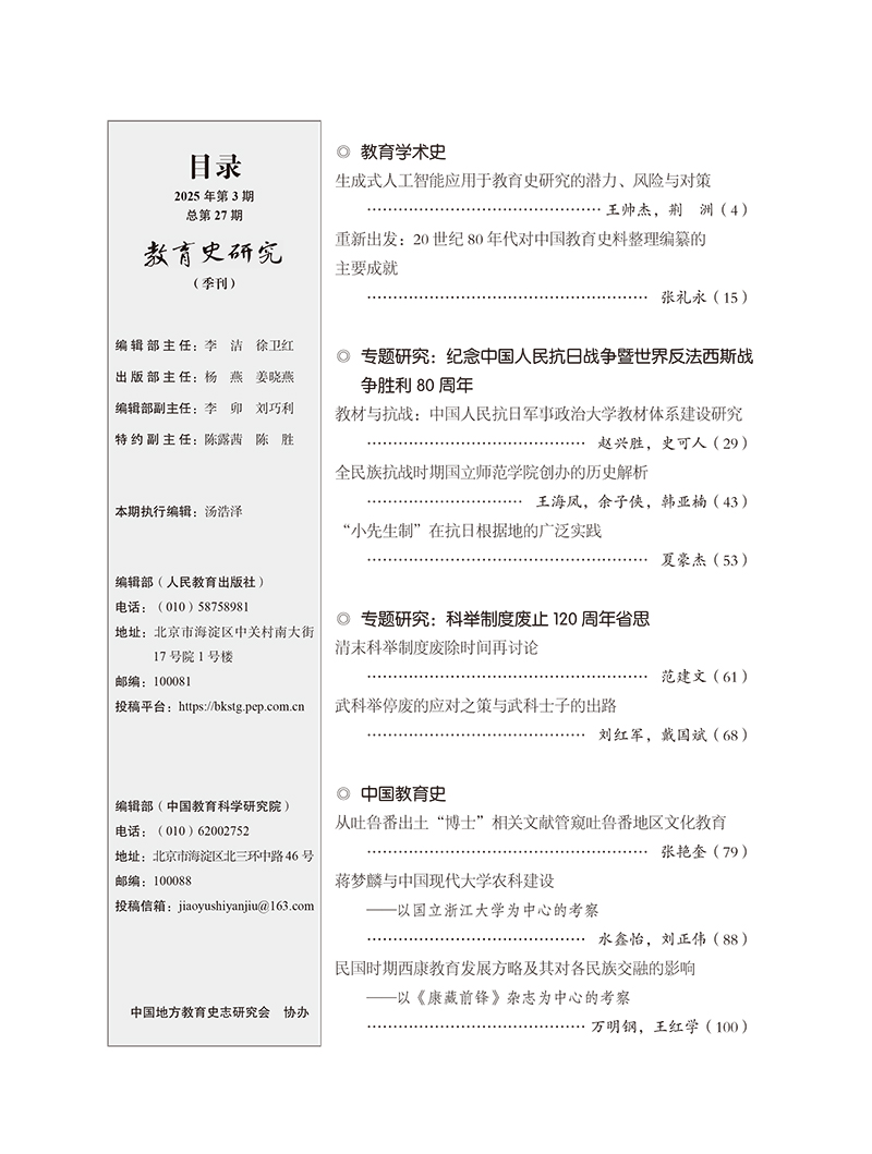 《教育史研究》2025年第3期(总期第27期)
