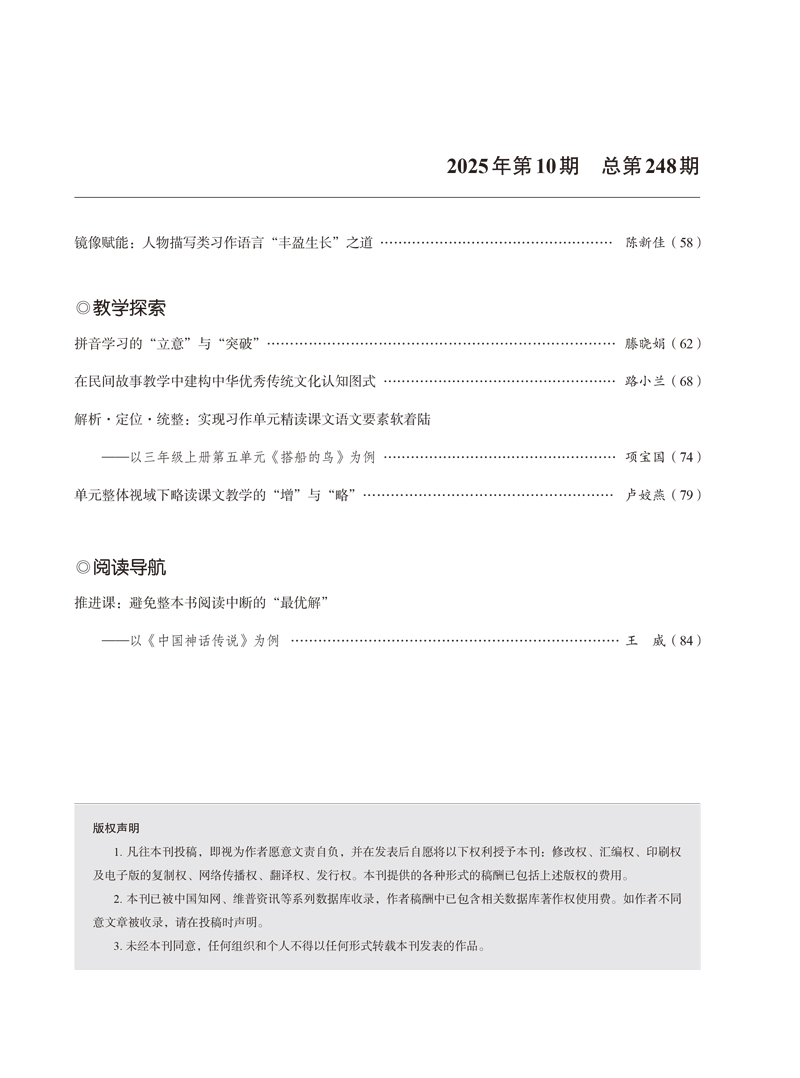 《小学语文》2025年第10期(总第248期)