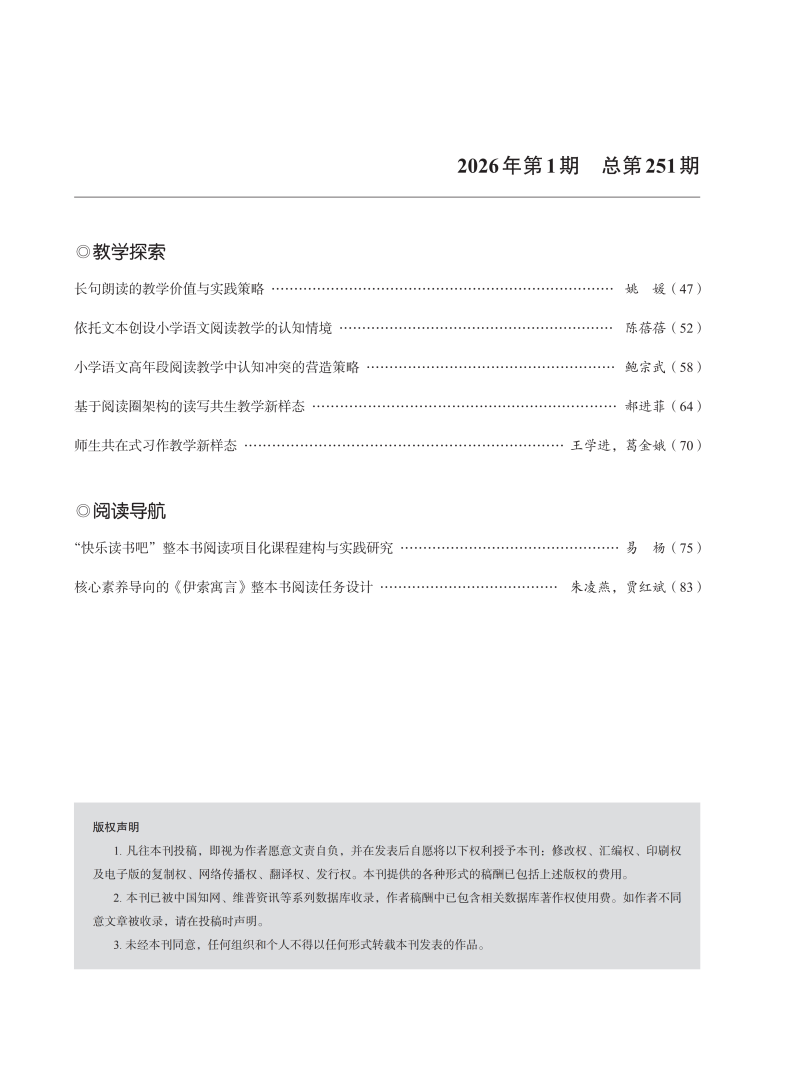 2026年第1期 “快乐读书吧”整本书阅读项目化课程建构与实践研究
