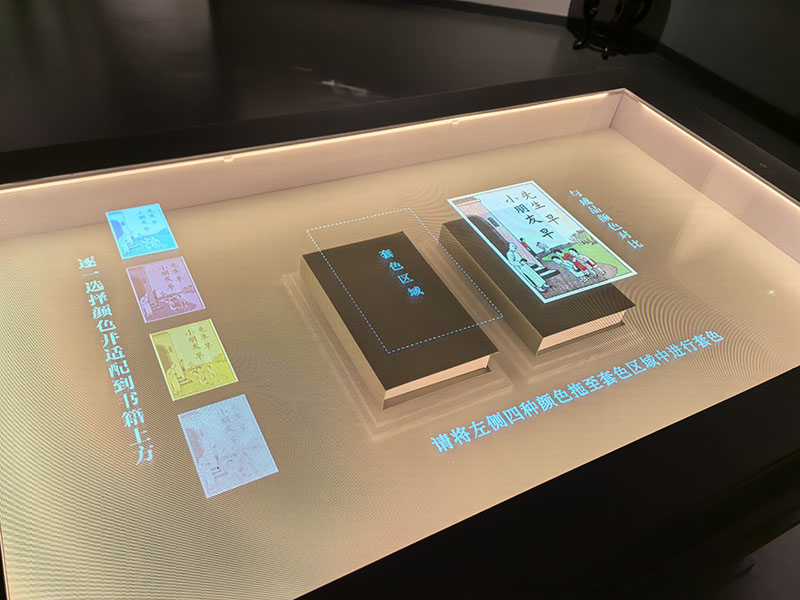 人教社博物馆在互动设计中引导观众感受多色套印技术。新京报记者 杨菲菲 摄