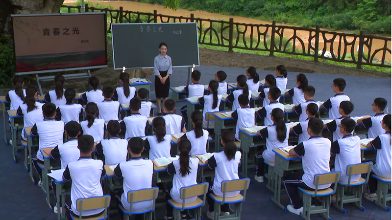 2025年5月,广西百坭村同心文化广场《青春之光》授课现场。 人民教育出版社供图