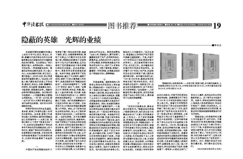 传承好革命先烈的红色基因,是学者、教育工作者和出版人共同的光荣使命。由学者、教育工作者和出版人共同策划、编写的《隐蔽战线上的英雄传奇——光荣之旅 强国之路》(以下简称“《隐蔽战线》”)一书,生动而全面地展现了革命战争年代革命先烈在隐蔽战线上的斗争历史,塑造了革命先烈忠诚担当、机智勇敢的光辉形象,为学校的革命传统教育提供了比较理想的读本,为讲好革命故事做了有益探索。