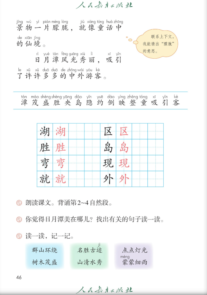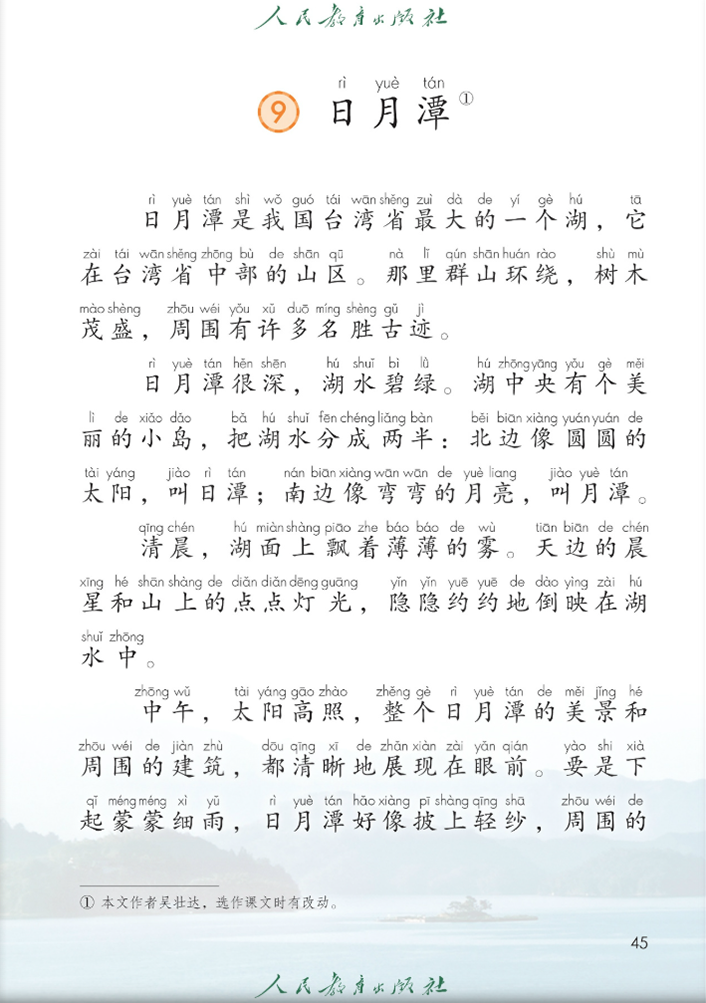 统编语文教材(人教社出版)二年级上册《日月潭》。