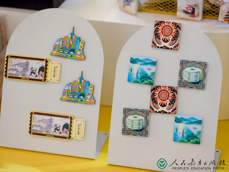 主题文创展展售了“课本中的鲁迅”“李雷与韩梅梅”“教小萌和教小淘”“跟着课本去旅行”等系列二百余种文创产品。其中,“跟着课本游浙江”系列的良渚古城陶瓷冰箱贴、观潮课本抱枕、兰亭集序杜邦纸背包等新品限定首发;“课本中的鲁迅”系列新品尤为引人注目,包括身穿青色长褂、佩戴“早”字徽章的限量版Q版手办,以及TREEMAN斜挎包、创意卡包、语录抱枕毯等实用物件。可翻阅的经典“小课本”挂件、融合地方元素的创意产品等,也成功唤起了观众强烈的怀旧情感与共鸣。