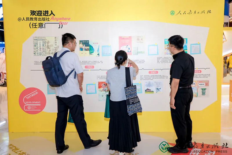 展览现场特别设置了“课本中的经典——人民教育出版社教材精粹展”,以时间轴形式系统陈列了自1950年以来的十二套全国通用中小学教科书,全景式展现新中国基础教育教材的发展历程。