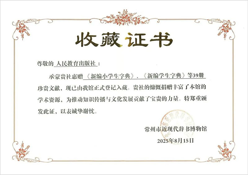 开幕式上,常州市近现代辞书博物馆正式揭牌。该馆的建立,为辞书文化的传承与研究搭建了新的实体平台。该馆系统收藏了涵盖语文、外语、民族语、专科及百科全书等各大品类的近现代辞书及相关文献,总计3000余册(件)。教育部语言文字信息管理司二级巡视员王丹卉、李宇明等领导与专家共同为博物馆揭牌。人教社捐赠辞书、史料、研究论集等共计39件,以1953年版《新华字典》《新编小学生字典》第1至4版、《新编学生字典》《汉字源流精解字典》等为代表,系统呈现了人教辞书的发展历程,也为博物馆的馆藏体系增添了厚重一笔。黄强参观常州市近现代辞书博物馆,并与参观领导深入交流博物馆馆藏和筹备过程。
